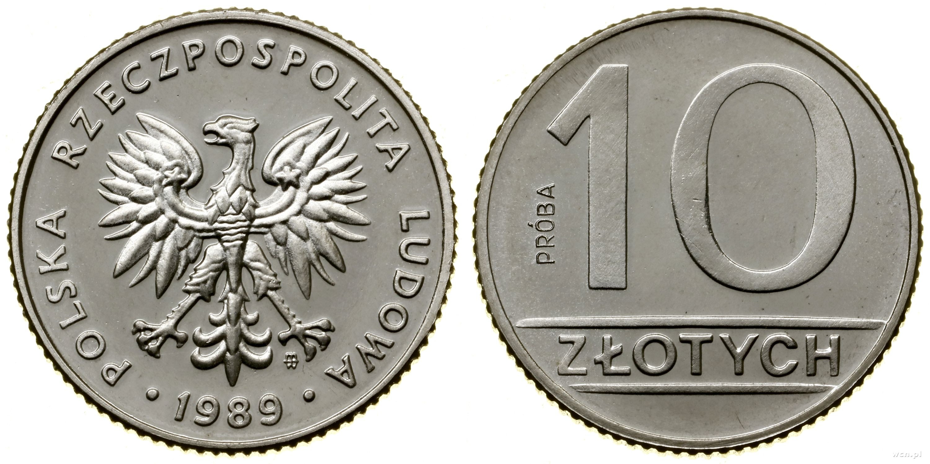 Nominał 10 ZŁOTYCH, wypukły napis PRÓBA na rewersie