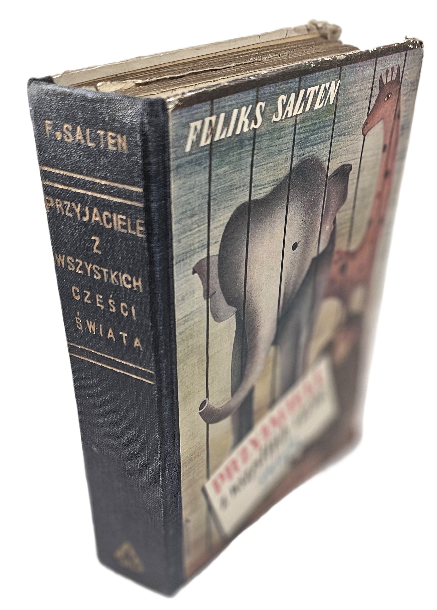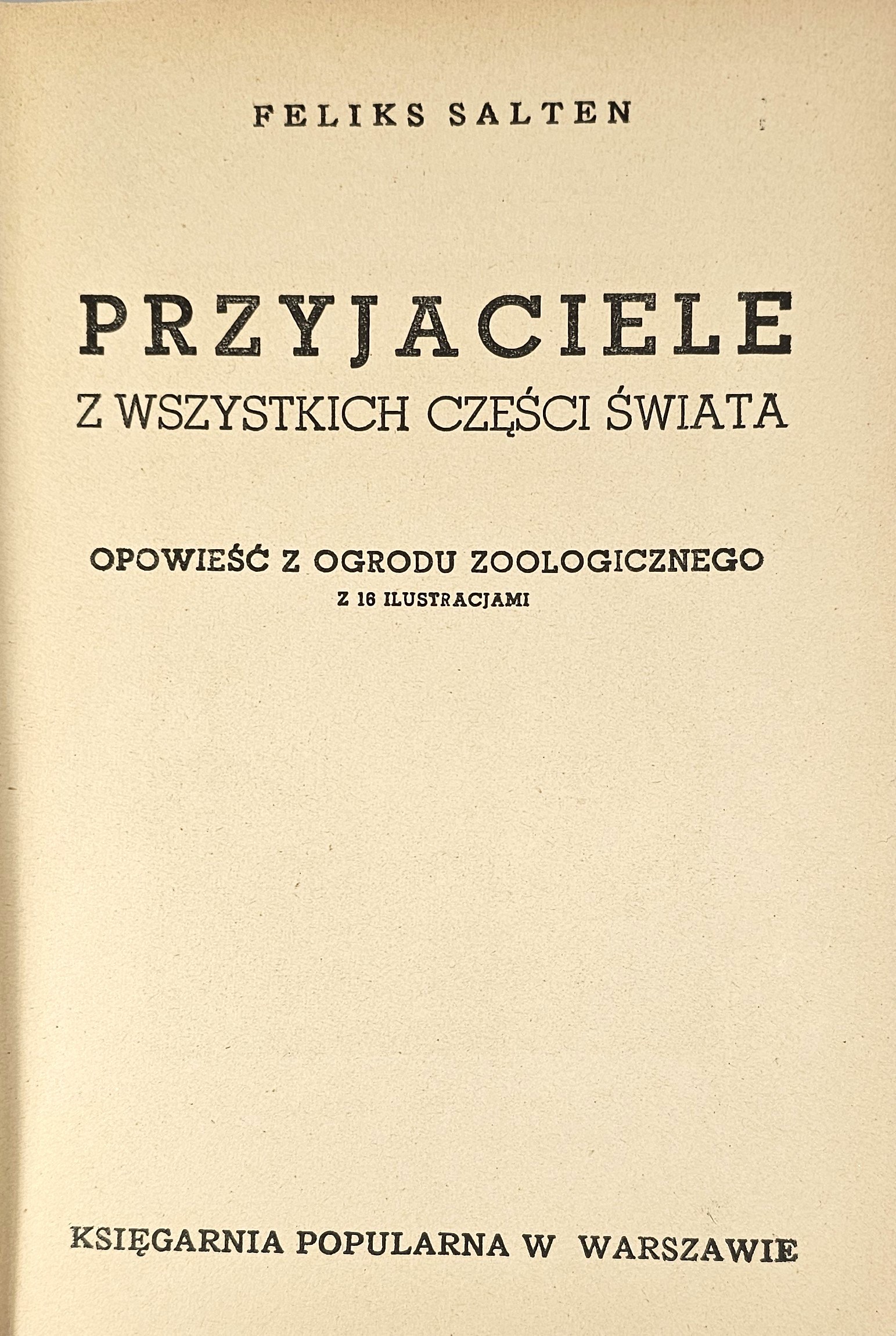 Opowieść z ogrodu zoologicznego. Z 10 ilustracjami. 20 cm, s. 225, [3], ilustr., opr. ppł. oryg. Okładka według proj. Atelier J. i M. Leopoldstadt. Blok pęknięty, grzbiet luźny.
