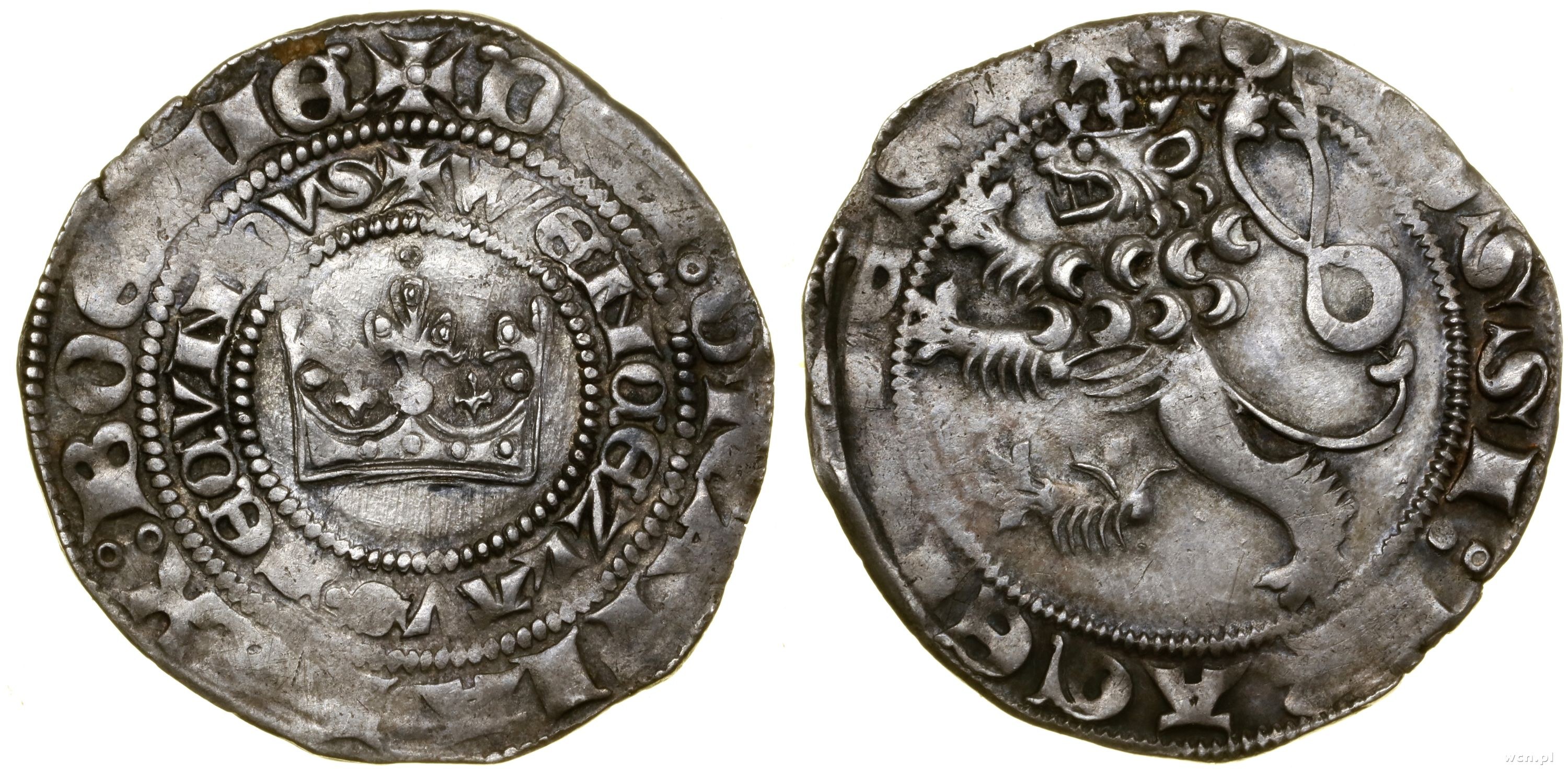 Aw: Korona, + WENCEZLAVS • SECVNDVS / + DEI ⦂ GRATIA ⦂ REX ⦂ BOEMIE; Rw: Lew czeski, ✶+✶ GROSSI ⦂ PRAGENSES