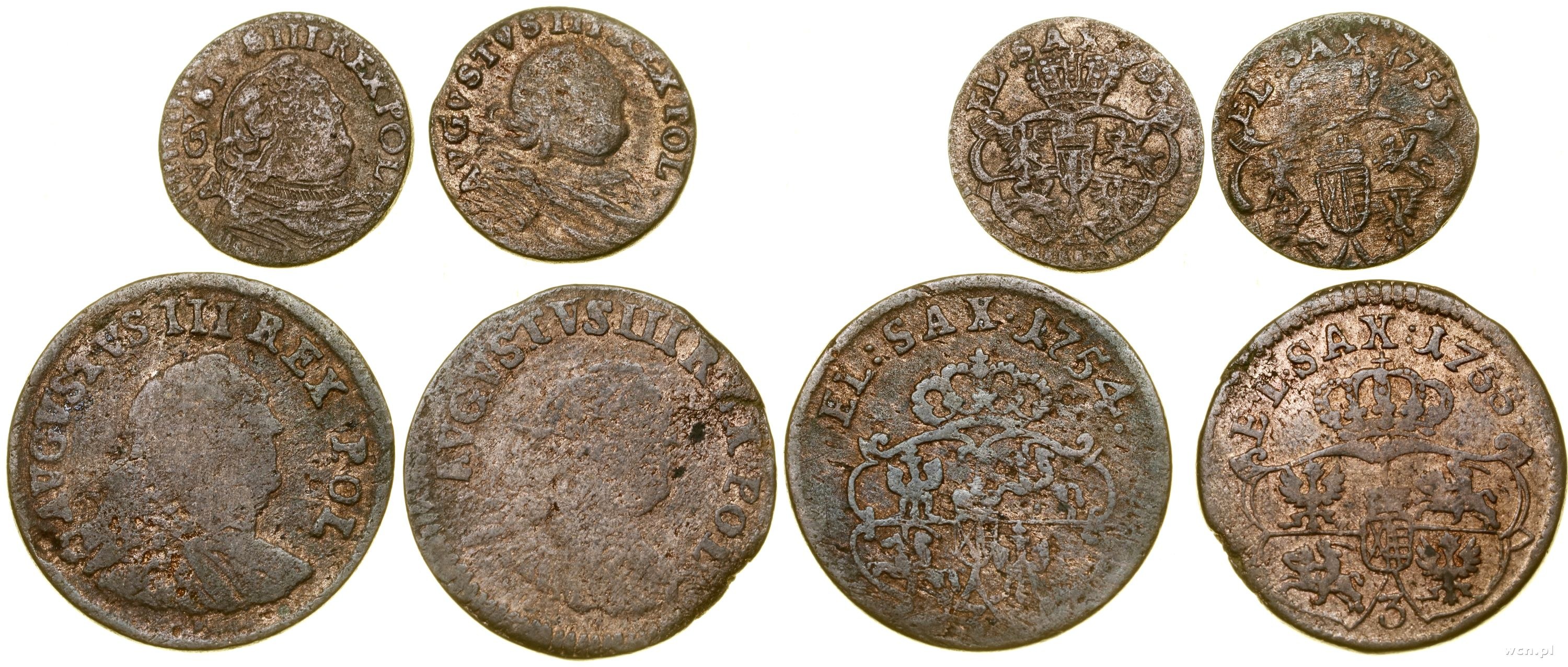 1. 2 x 1 grosz - 1754 (3), 1755 (3) 2. 2 x szeląg - 1753 (?), 1755 (?)