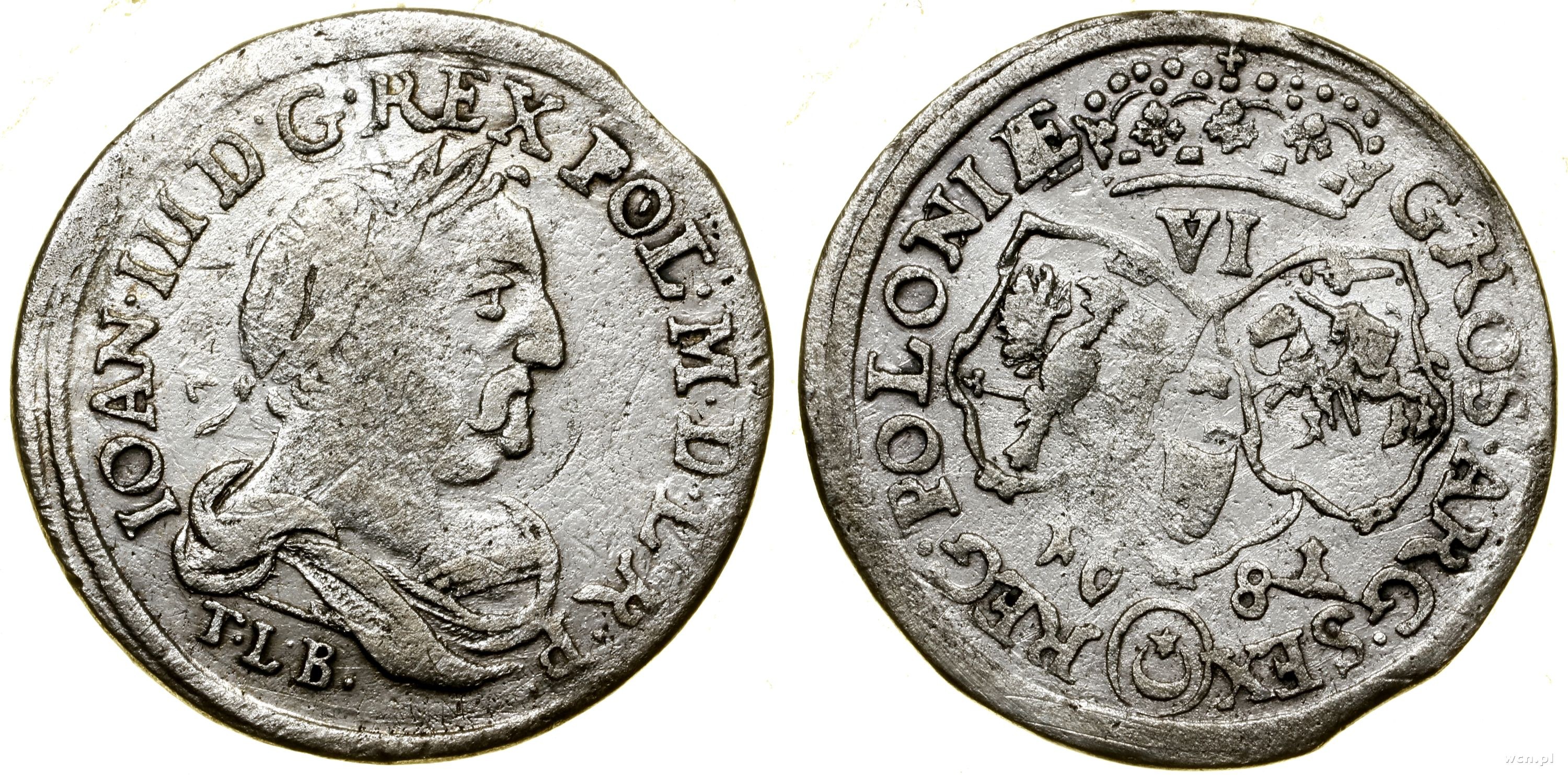 popiersie króla w wieńcu laurowym i płaszczu, herb Leliwa na rewersie, prostokątne klejnoty w obręczy korony