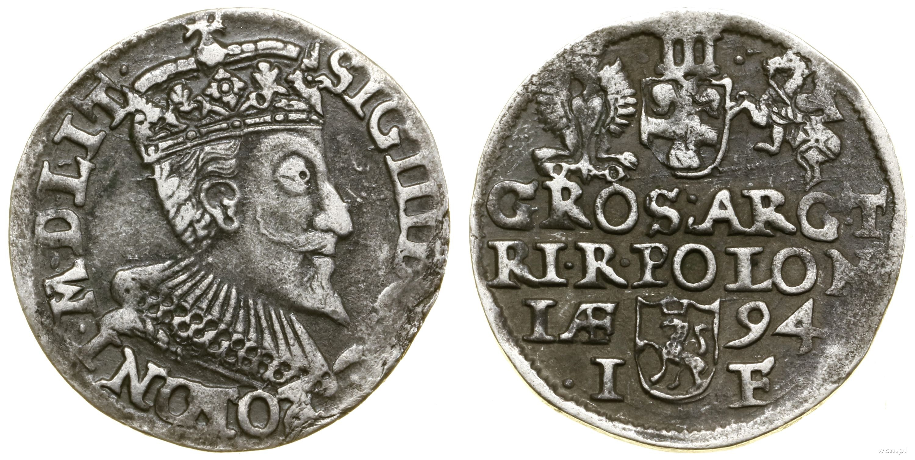 bez trójnogiej strzały, herb Wazów w prostej tarczy, płaska korona króla, na awersie POLONI ... LIT