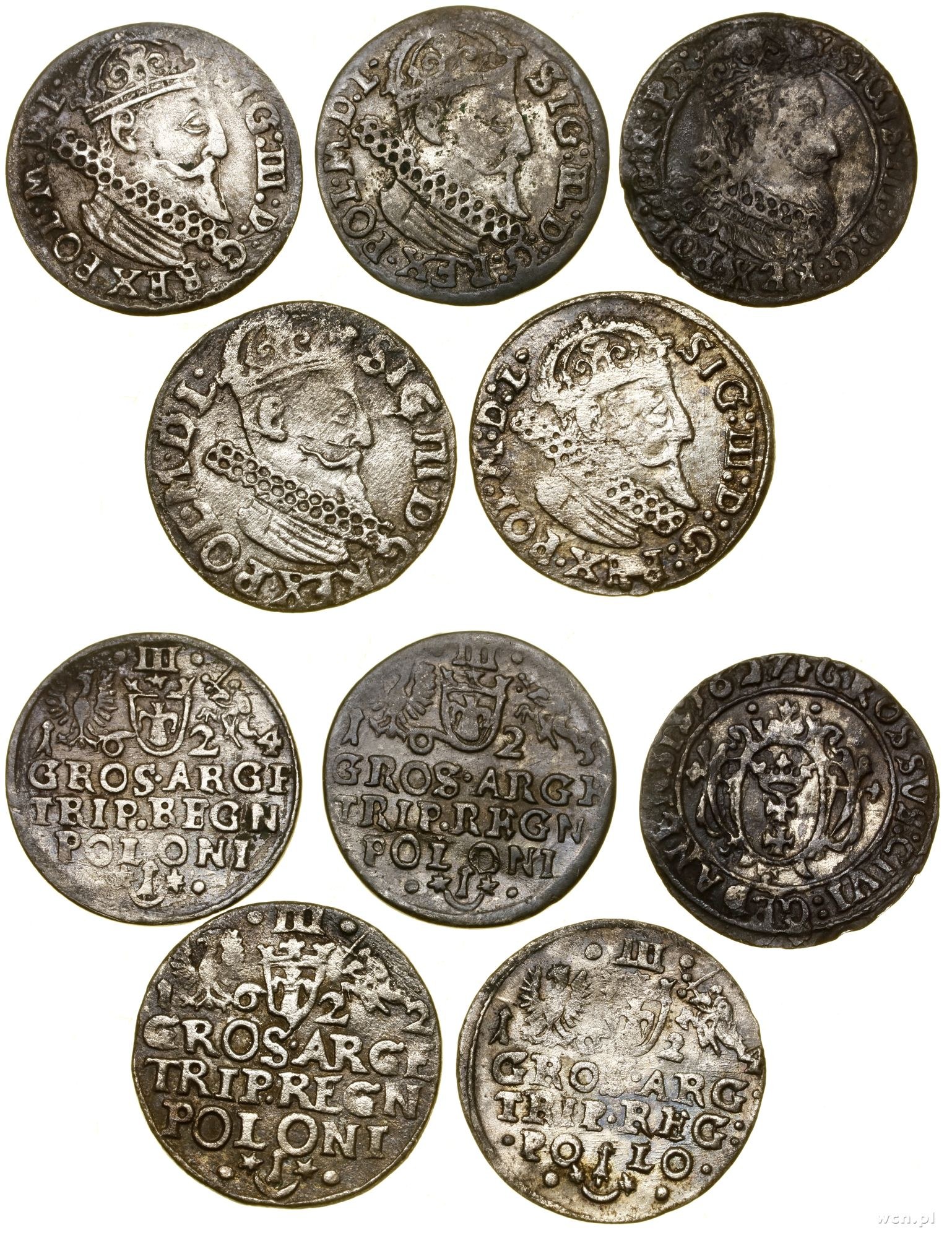 1. 4 x trojak: 1622, 1623, 2 x 1624 - Kraków 2. grosz, 1627, Gdańsk