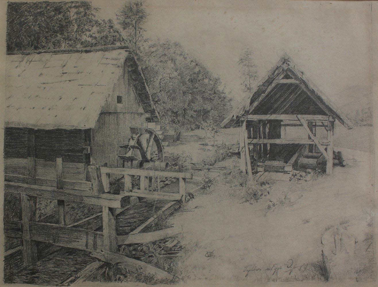Młyn w Tyliczu(1889) sygn.śr.d. monogramem wiązanym WG., dat.p.d. 6/8 89