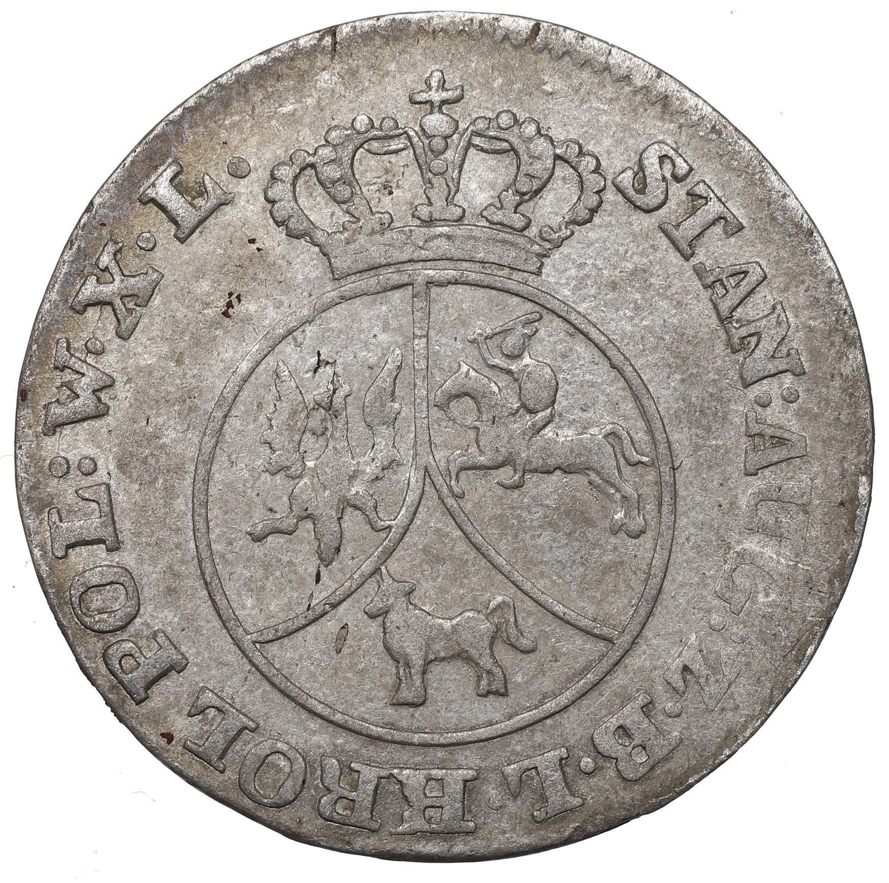 Awers: ukoronowana, trójpolowa tarcza herbowa z herbami Korony Królestwa Polskiego, Wielkiego Księstwa Litewskiego i Poniatowskich, w otoku legenda: