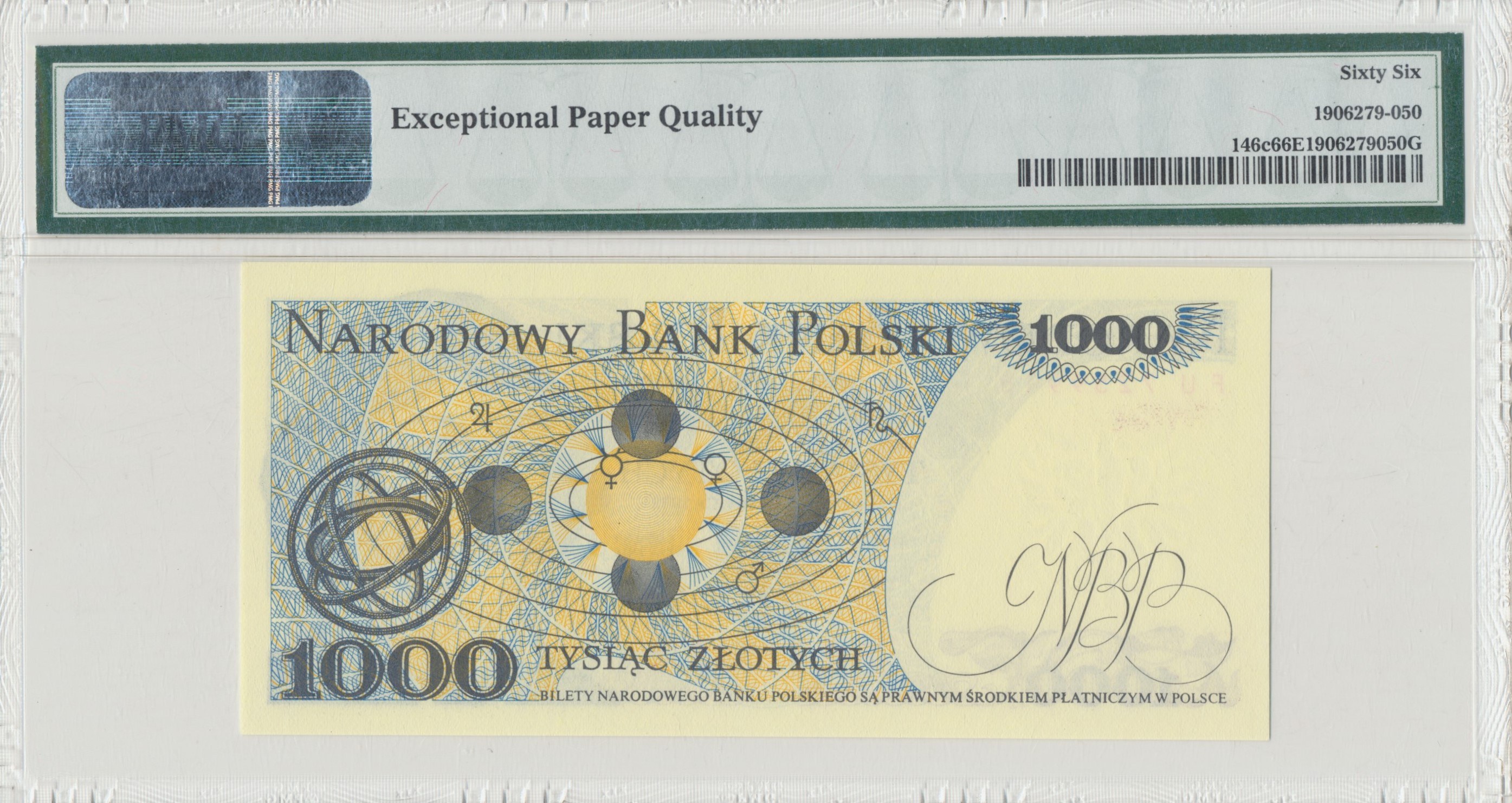 Egzemplarz w gradingu PMG z dopiskiem EPQ oznaczającym wyjątkową jakość papieru.