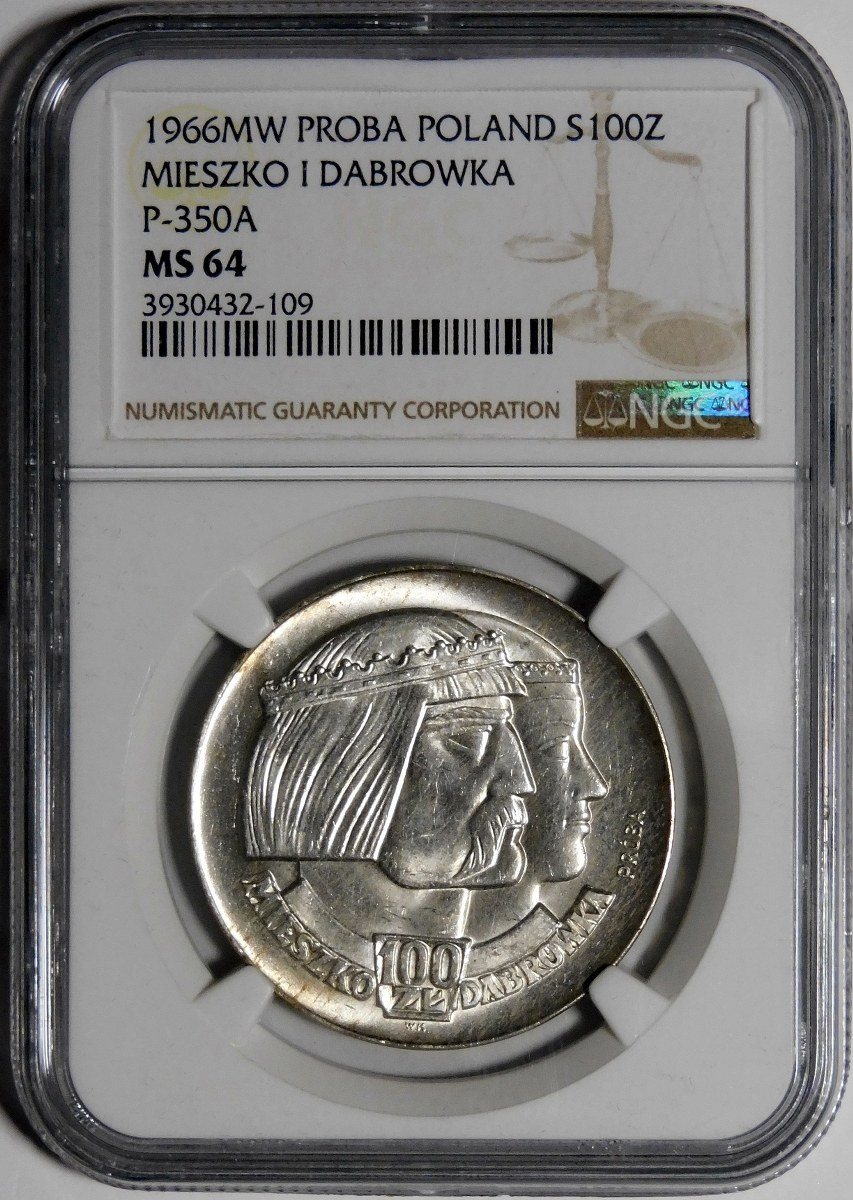 Próba 100 złotych Mieszko i Dąbrówka 1966 - srebro