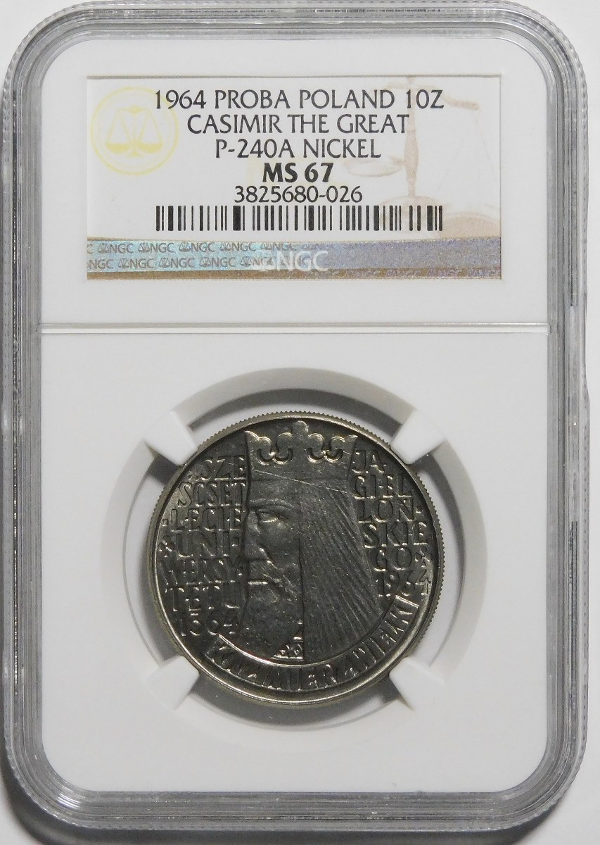 PRÓBA NIKIEL 10 złotych 1964 Kazimierz Wielki - wklęsły