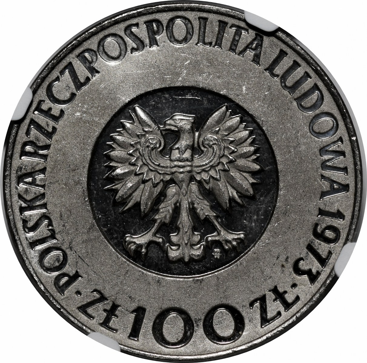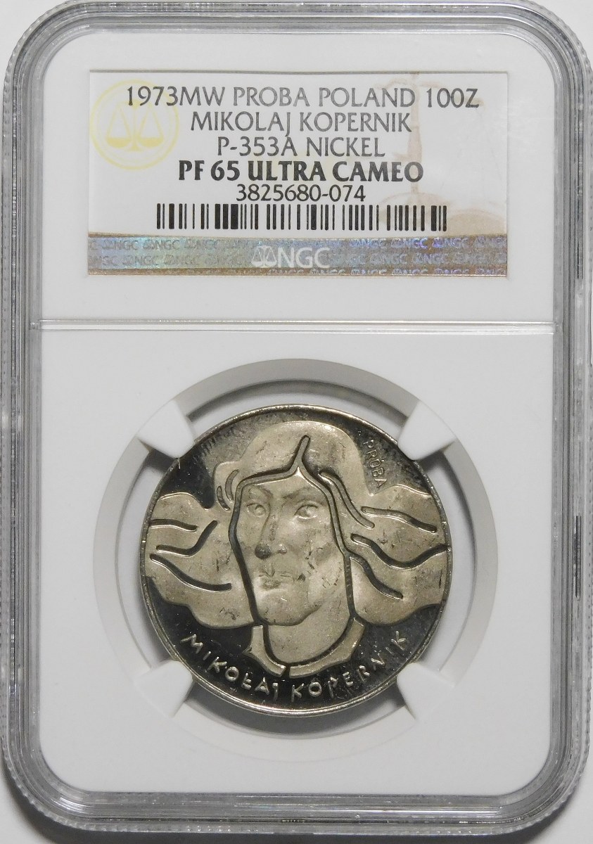 PRÓBA NIKIEL 100 złotych 1973 Mikołaj Kopernik - głowa, włosy dotykają obrzeża