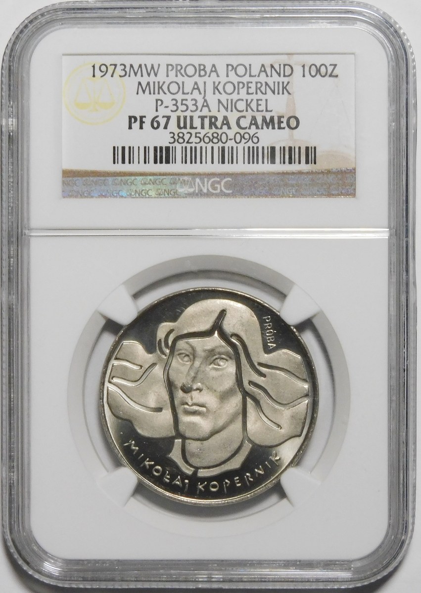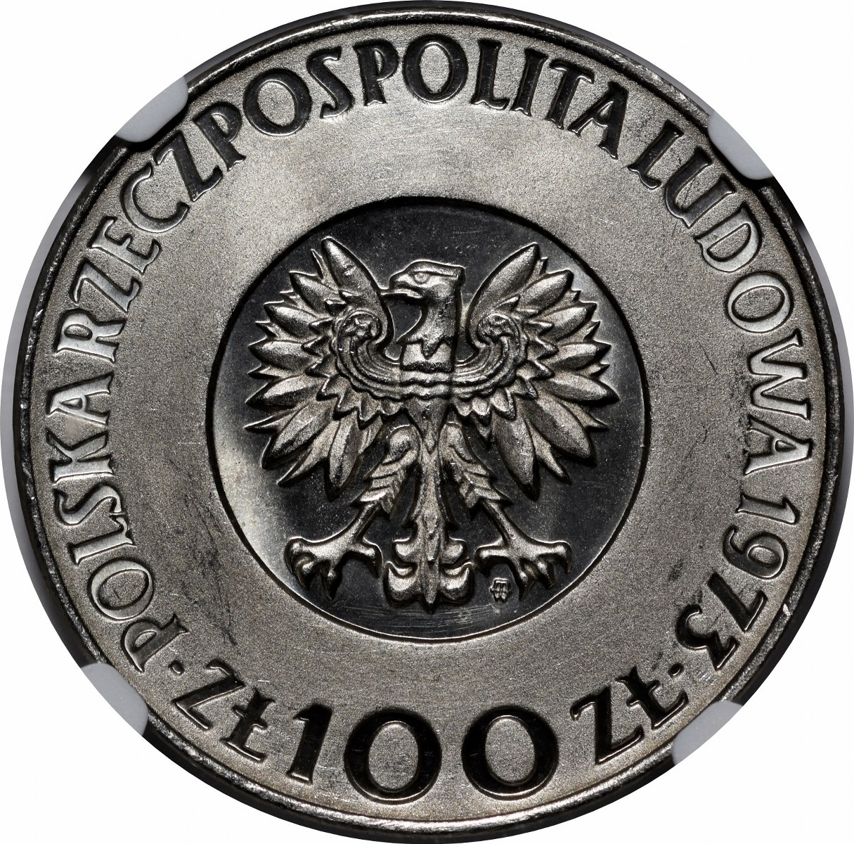 PRÓBA NIKIEL 100 złotych 1973 Mikołaj Kopernik - głowa, włosy nie dotykają obrzeża