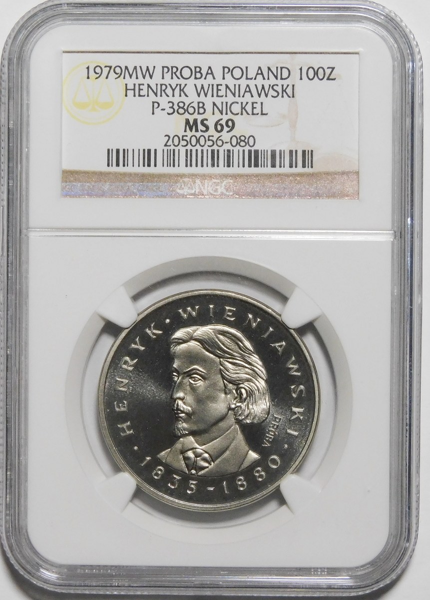 PRÓBA NIKIEL 100 złotych 1979 Henryk Wieniawski - napis w pełnym otoku