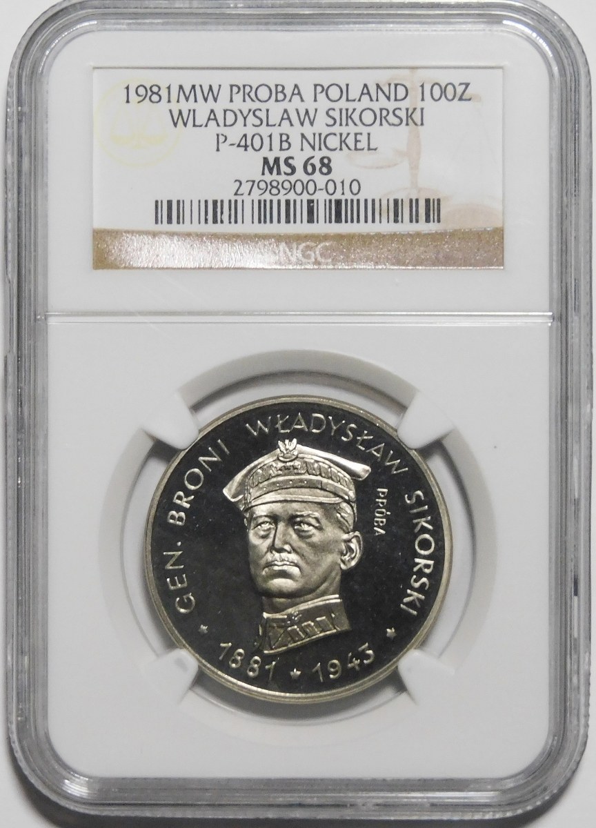 PRÓBA NIKIEL 100 złotych 1981 Władysław Sikorski - głowa na wprost