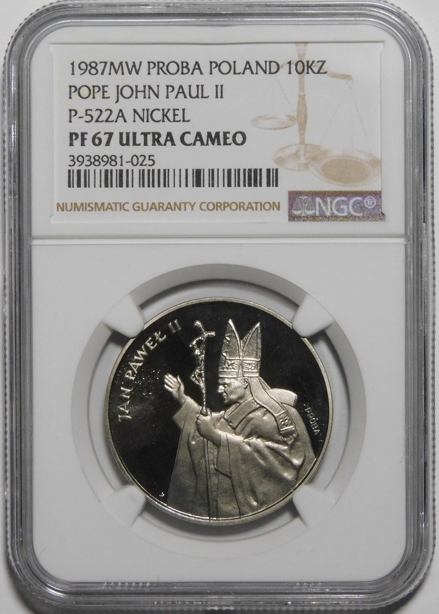 PRÓBA NIKIEL 10000 złotych 1987 Jan Paweł II - popiersie z krzyżem w lewo