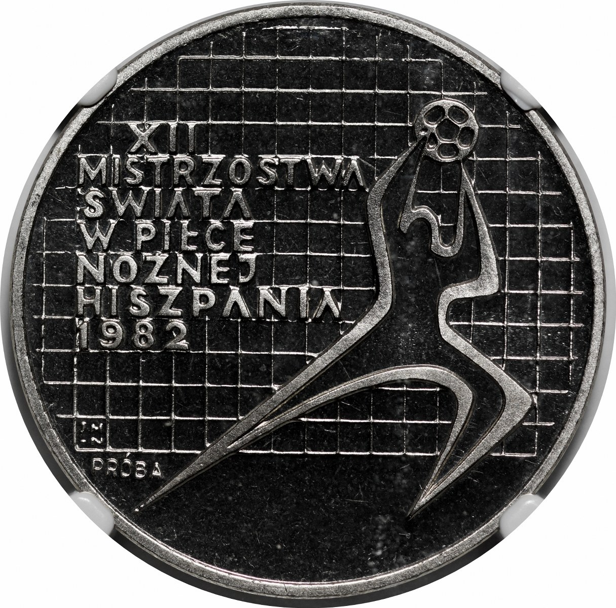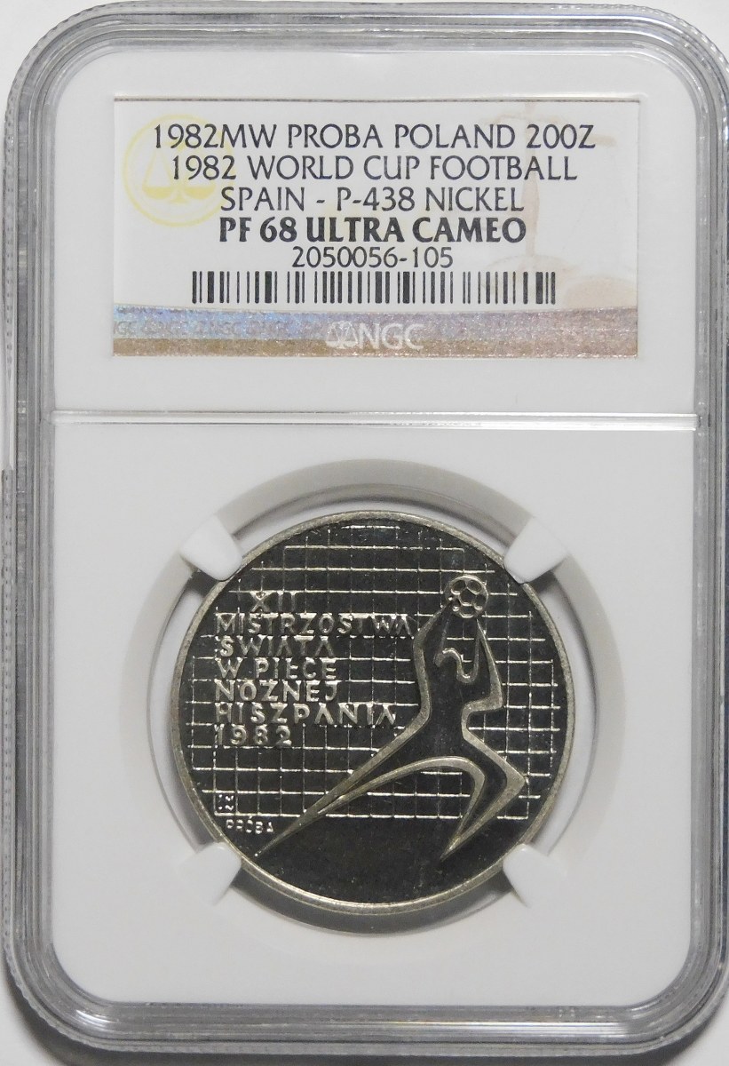 PRÓBA NIKIEL 200 złotych 1982 XII MŚ w PN - Hiszpania 1982 - bramkarz w prawo, bez napisu Espana