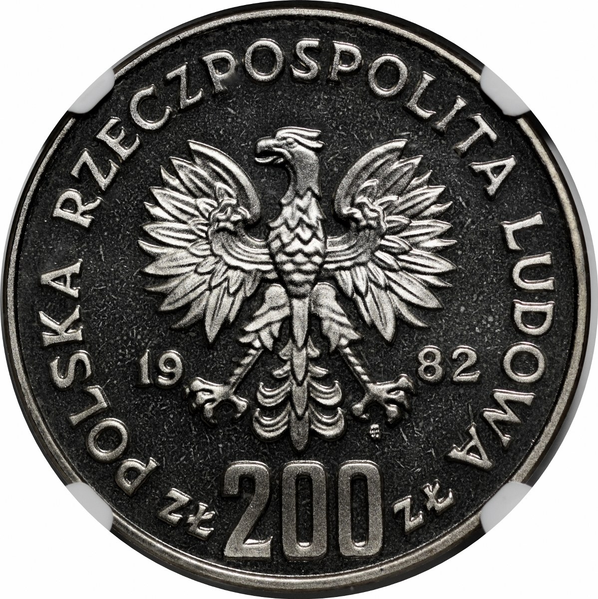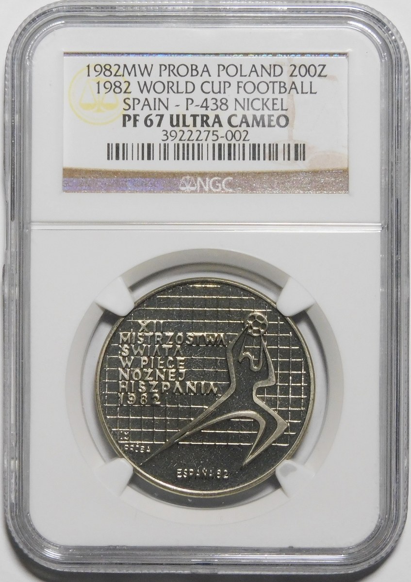 PRÓBA NIKIEL 200 złotych 1982 XII MŚ w PN - Hiszpania 1982 - bramkarz w prawo, w dołu napis Espana