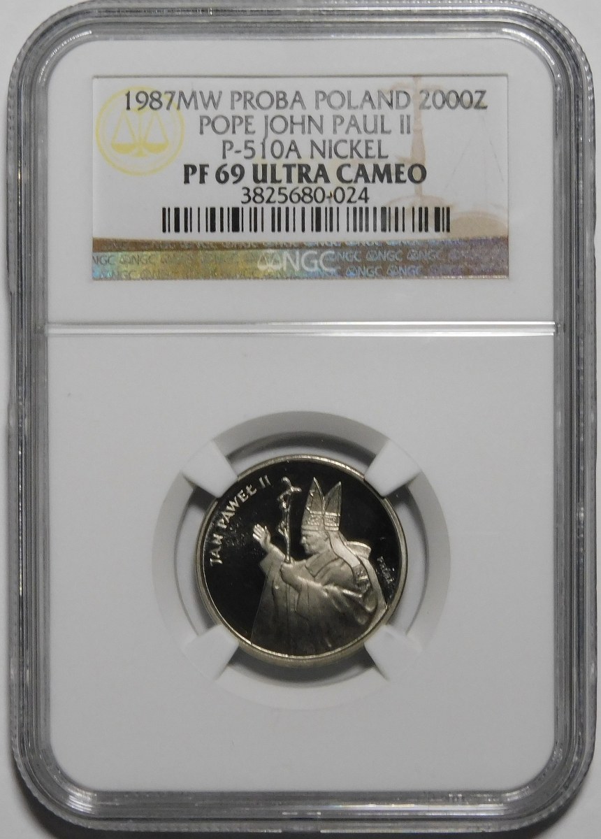 PRÓBA NIKIEL 2000 złotych 1987 Jan Paweł II - popiersie z krzyżem