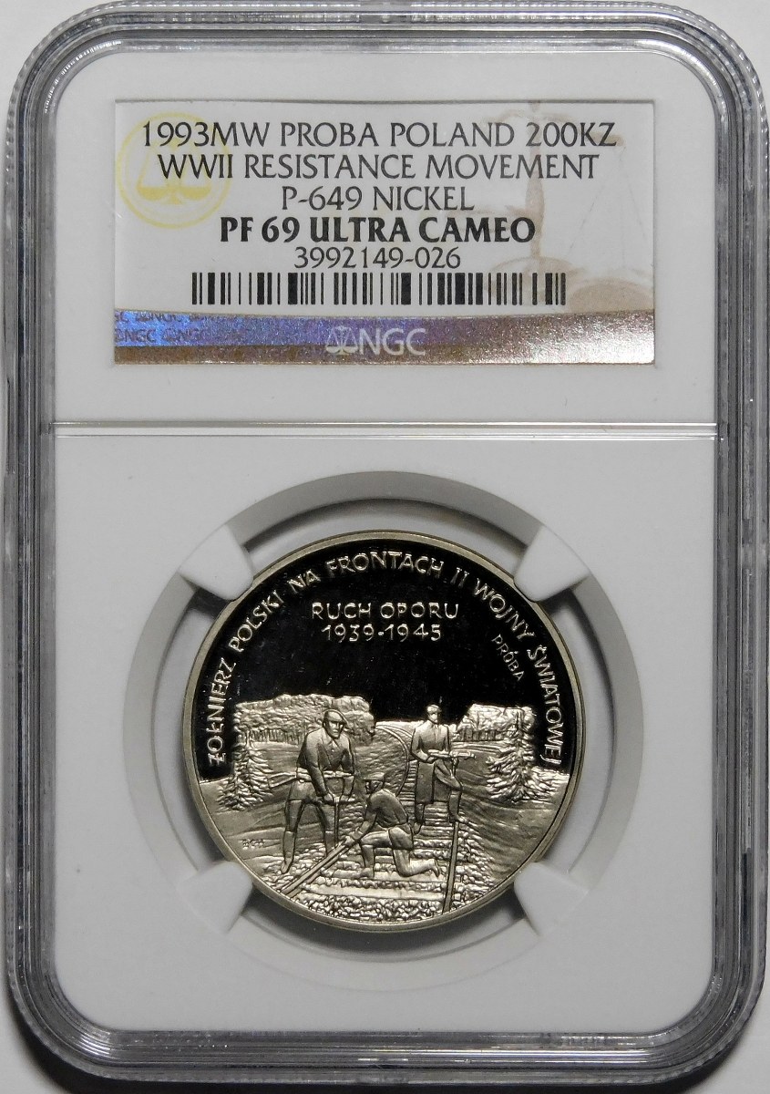 PRÓBA NIKIEL 200000 złotych 1993 Żołnierz Polski Na Frontach II Wojny Światowej - Ruch Oporu 1939-1945