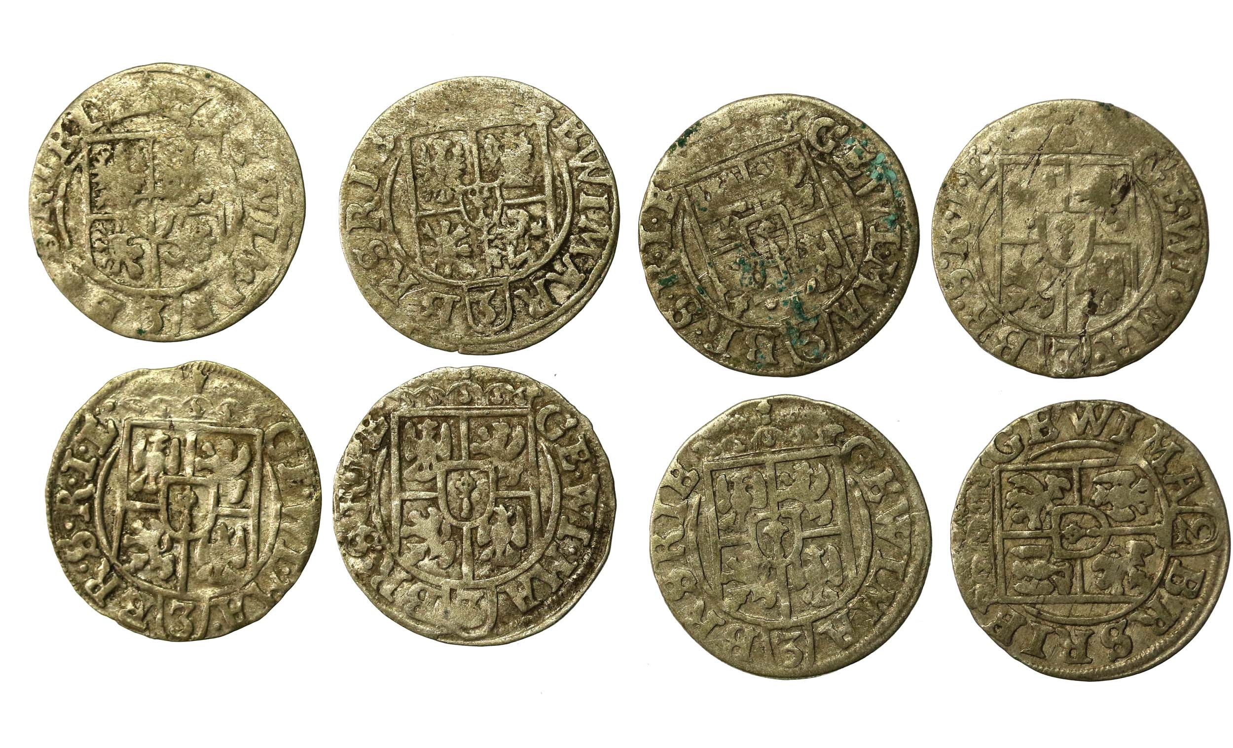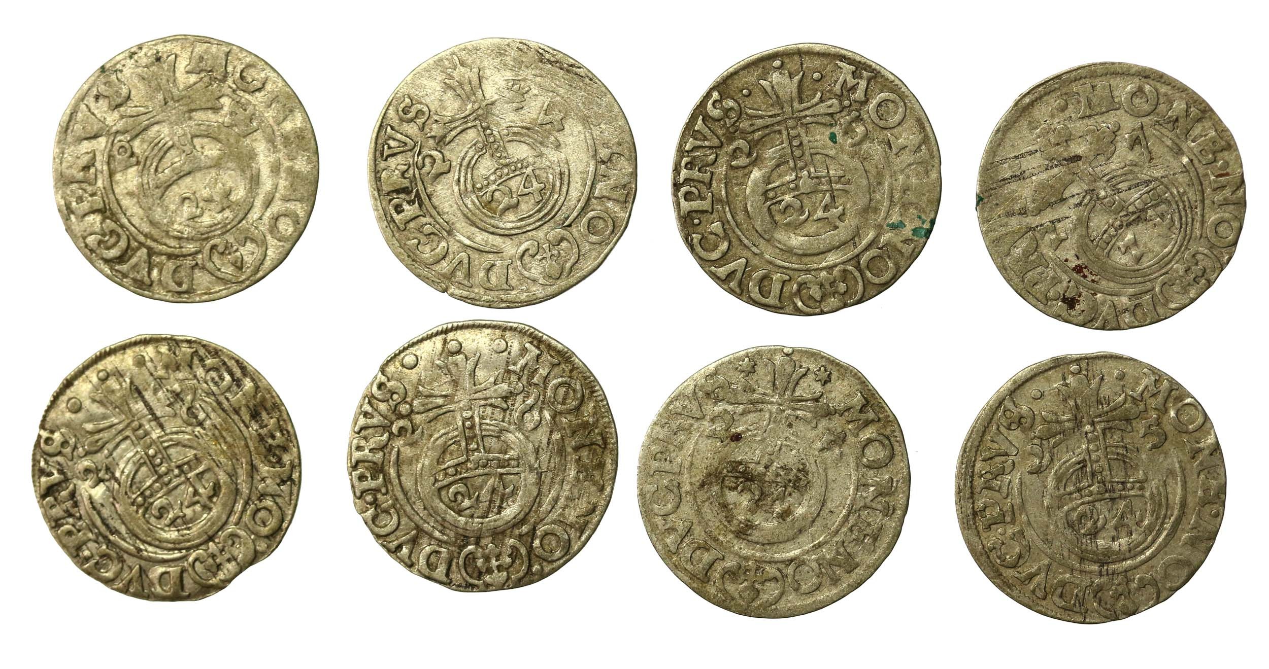Prusy Książęce, Jerzy Wilhelm, zestaw półtoraków bydgoskich. Razem 8 sztuk. Stan zachowania 2/2-