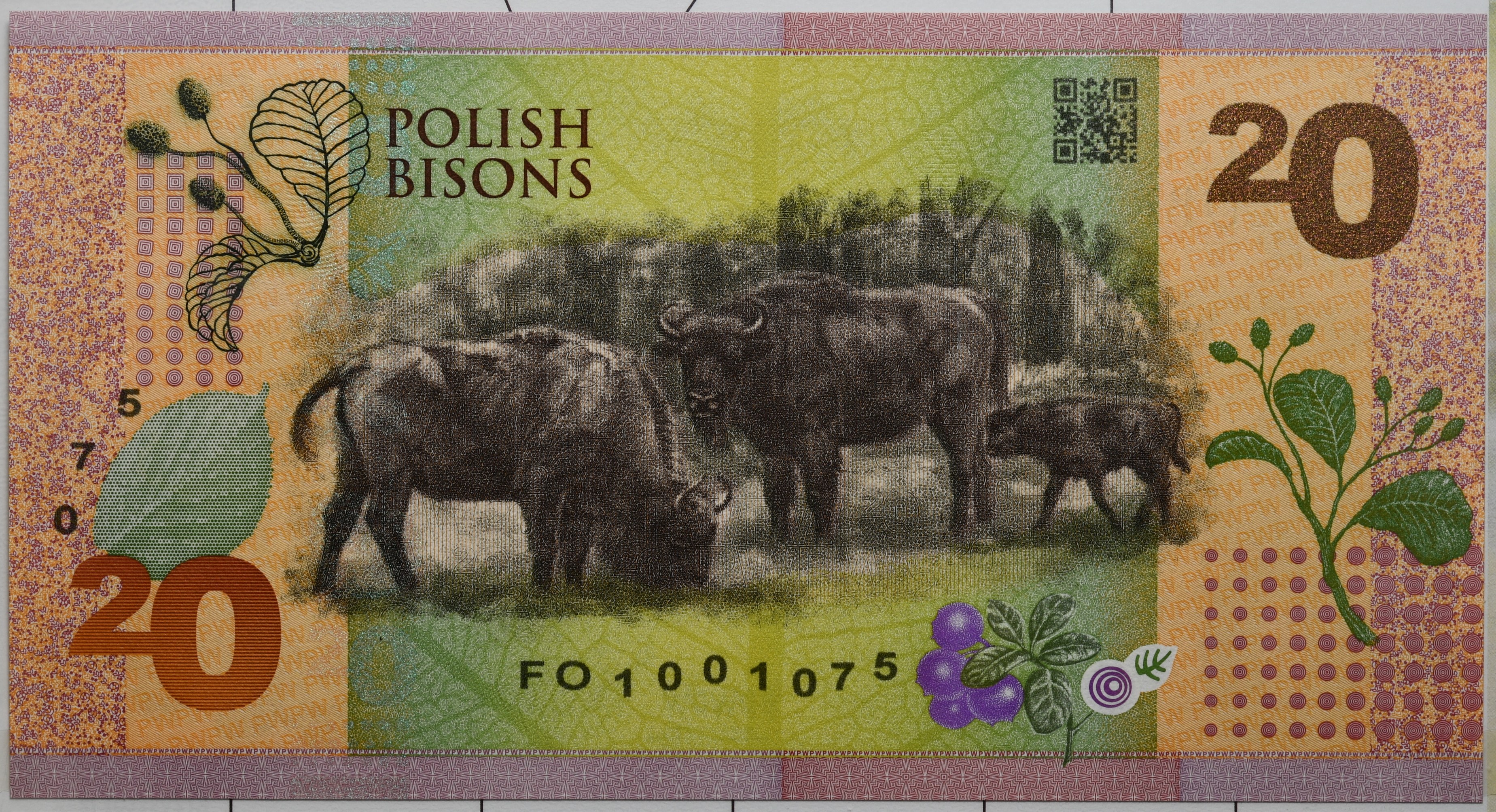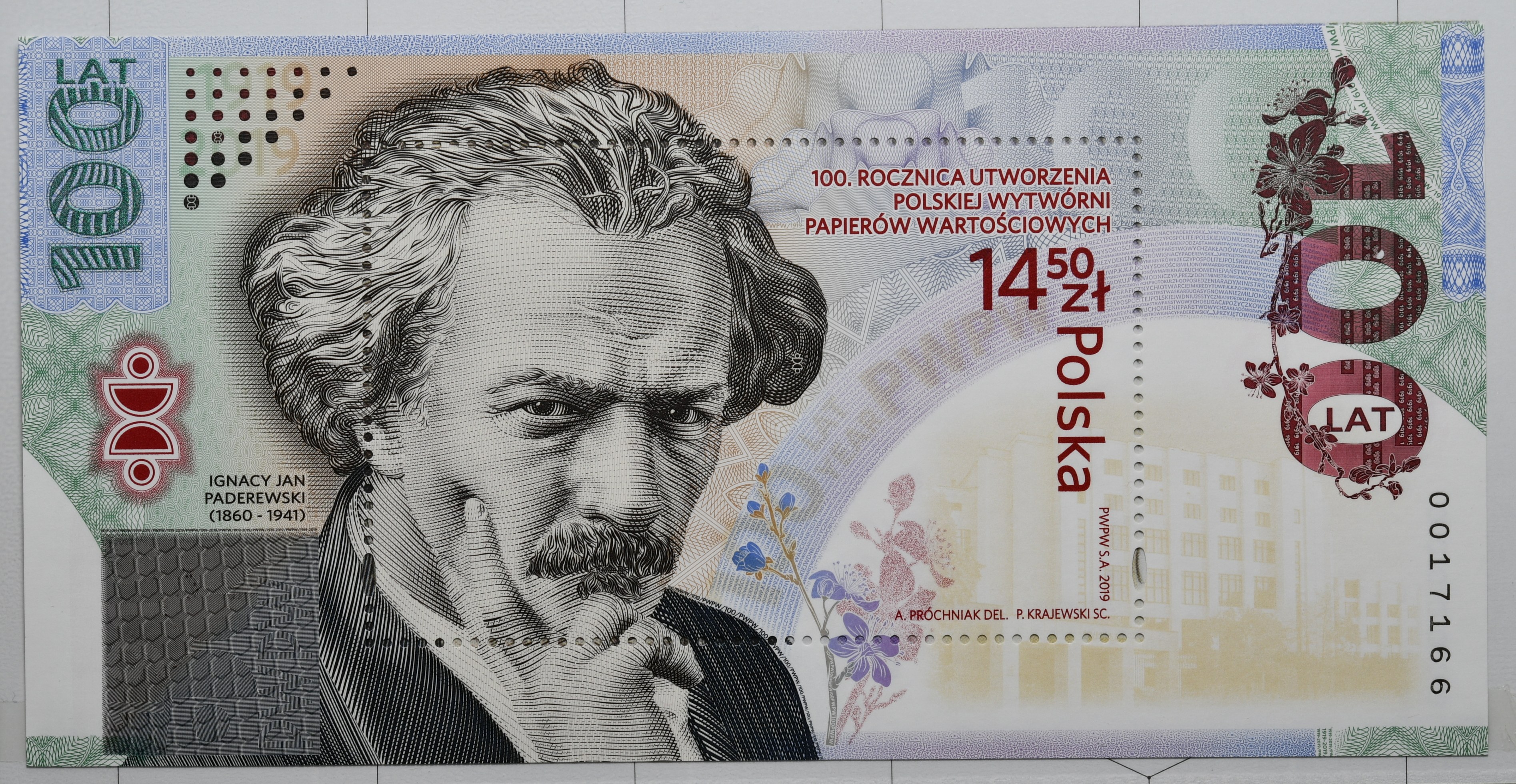 PWPW, Człowiek i Dokumenty nr 52, banknot testowy - Żubr + znaczek Paderewski