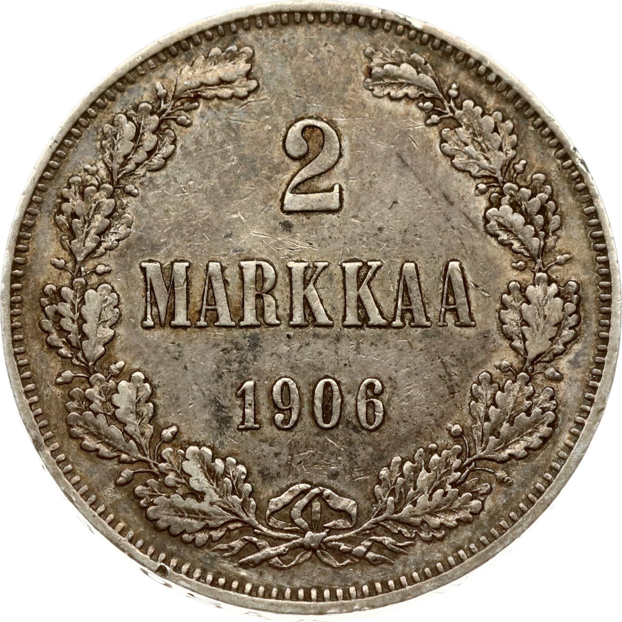 Russia For Finland. Nicholas II (1894-1917). 2 Markkaa 1906 L. Silver 10.33 g. Bitkin 396. Patina.