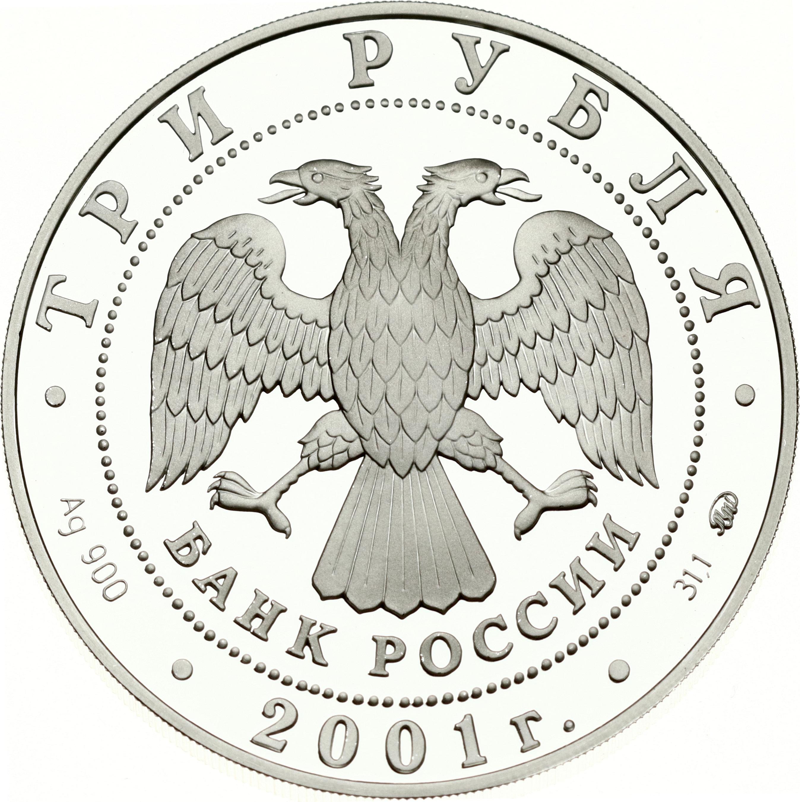 Russia. 3 Roubles 2001 MМД, The dam Dnieproges. The Savings-Affairs in Russia. Silver .900, 34.72 g. Mintage 17 500 pcs. Y 735.