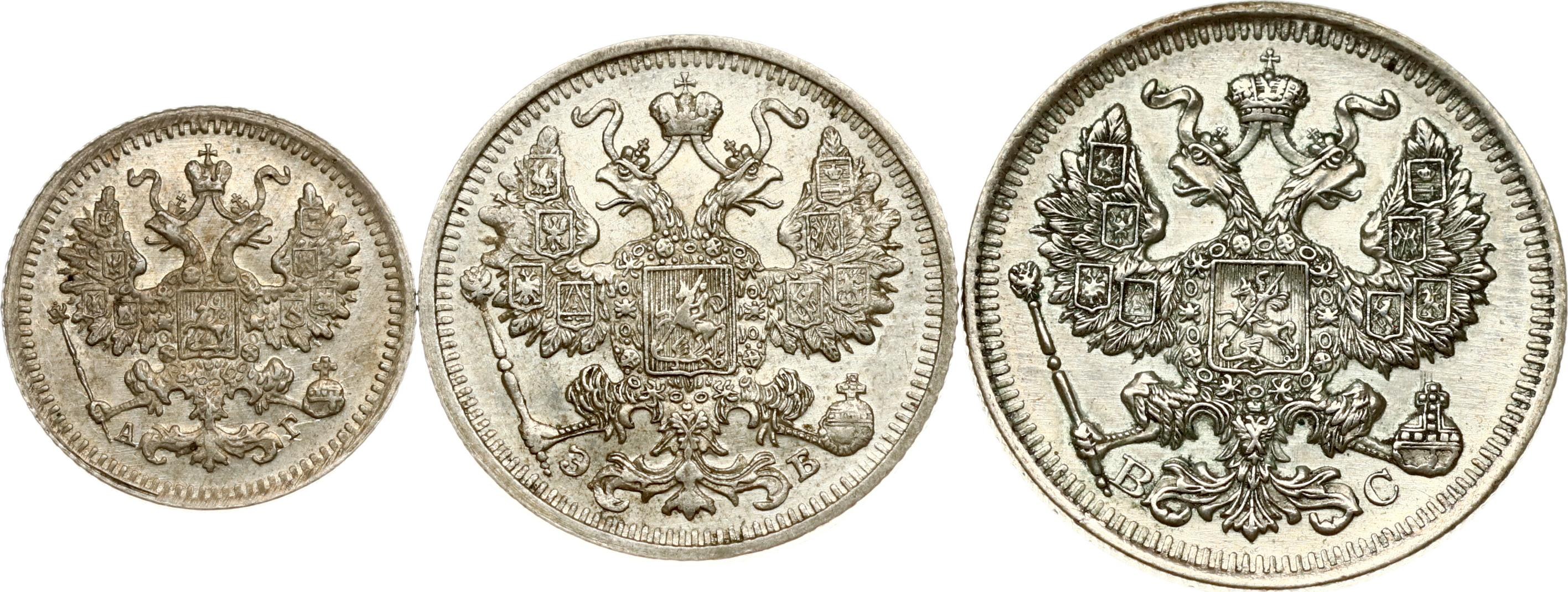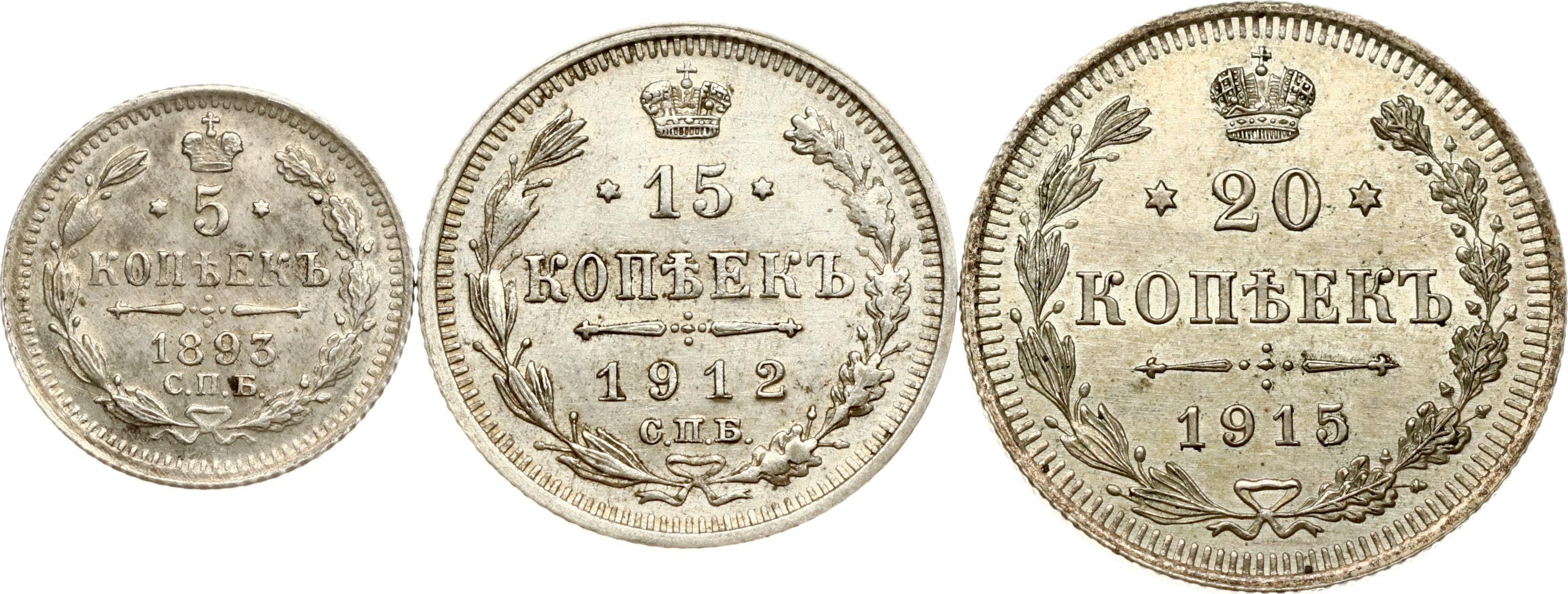 Russia 5 - 20 Kopecks 1893-1915 Lot of 3 coins