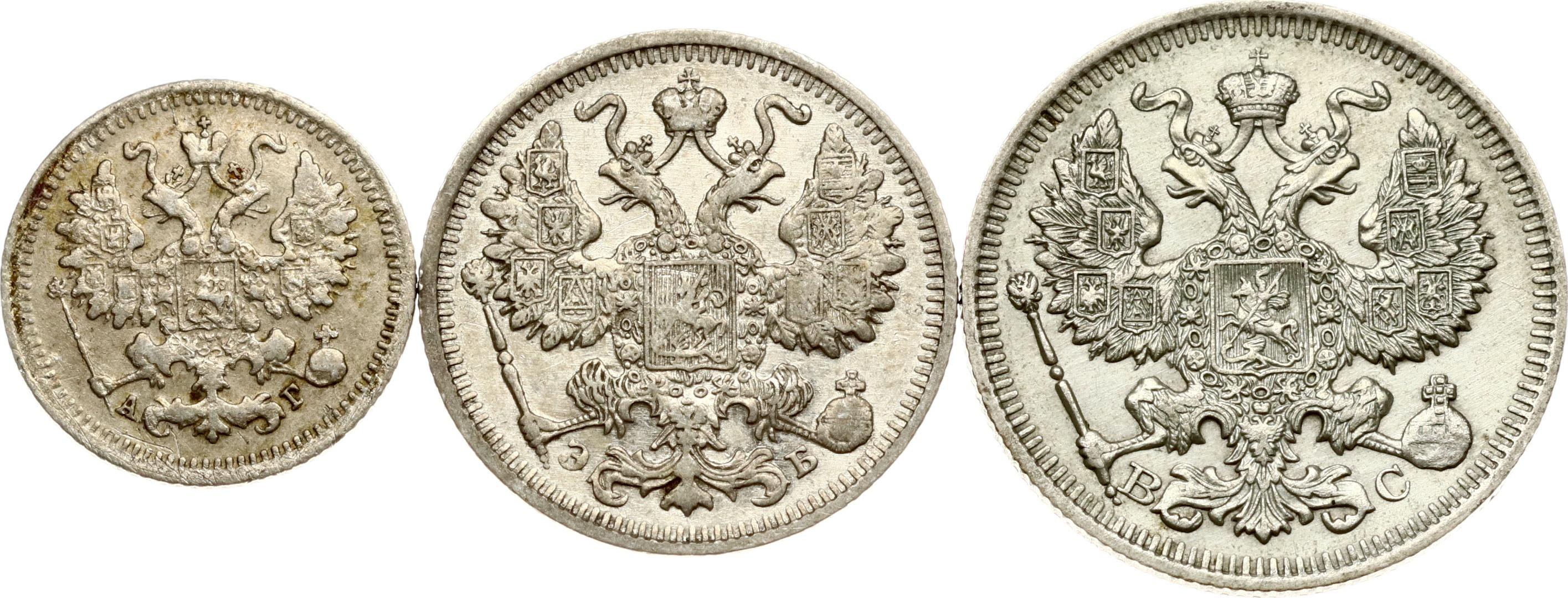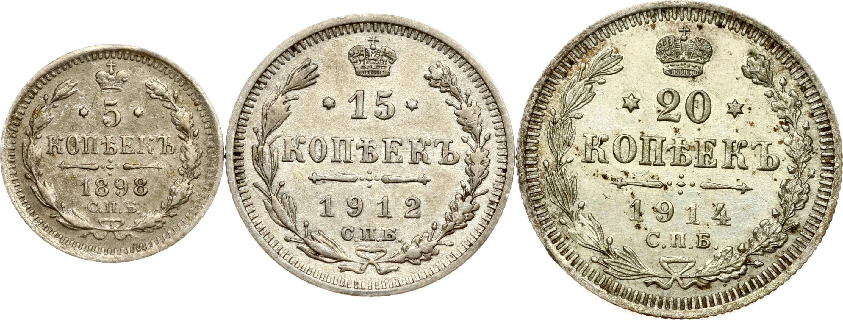 Russia 5 - 20 Kopecks 1898-1914 Lot of 3 coins