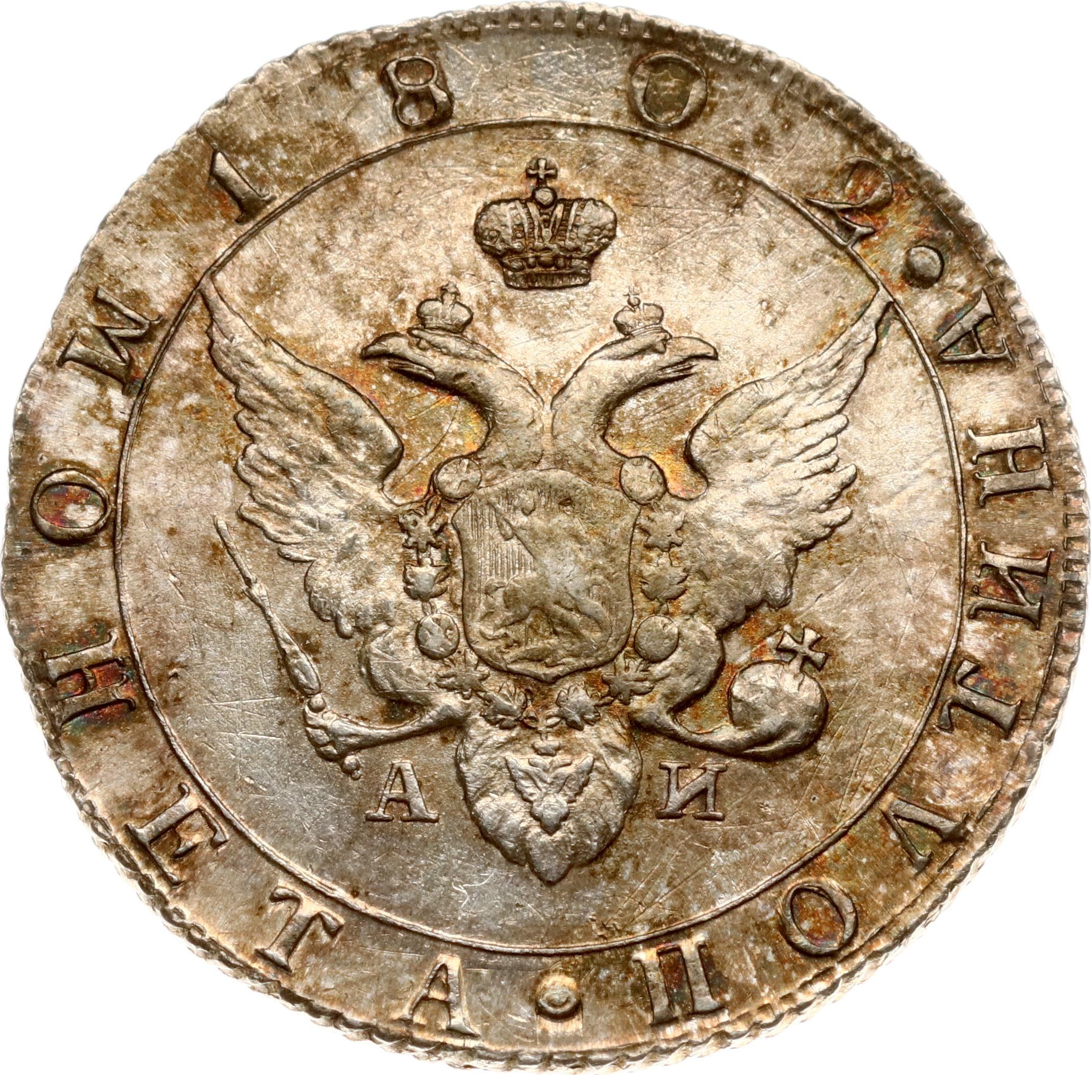 Russia. Alexander I (1801-1825). Poltina 1802 СПБ-АИ, St. Petersburg. Silver 10.35 g. Bitkin 42 (R). Small scratches. Nice color toning.