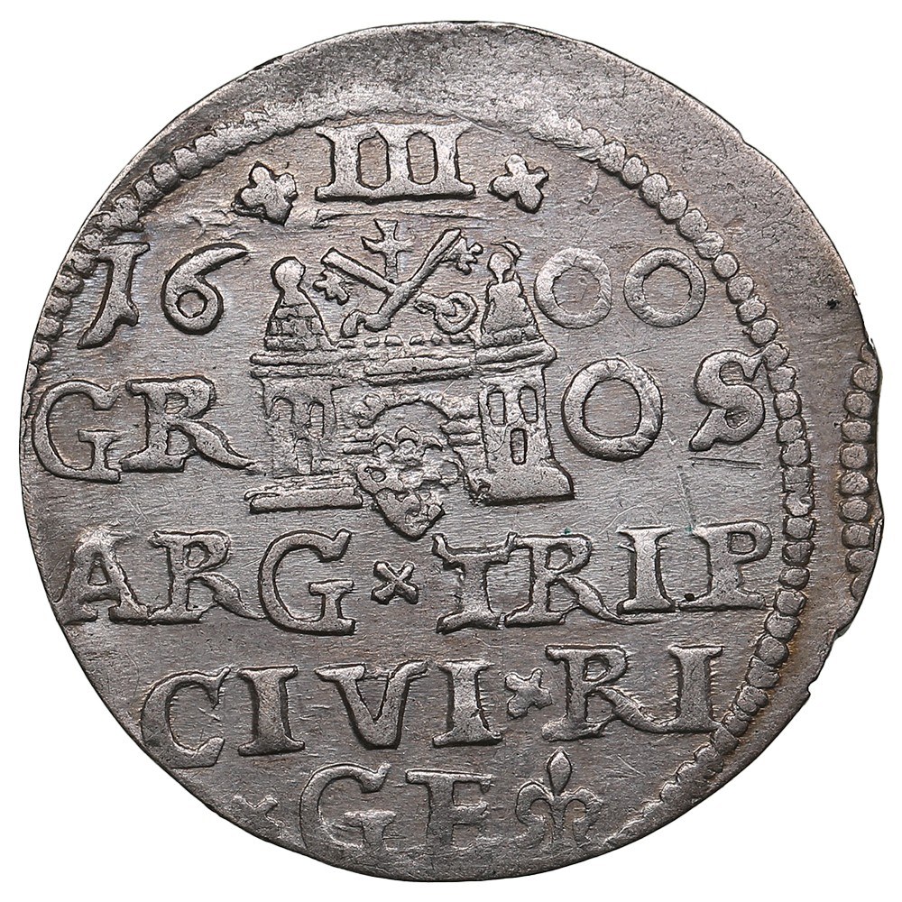 City of Riga under Polish rule, AR 3 Groszy / Trojak 1600 - Sigismund III Vasa (1587-1632)