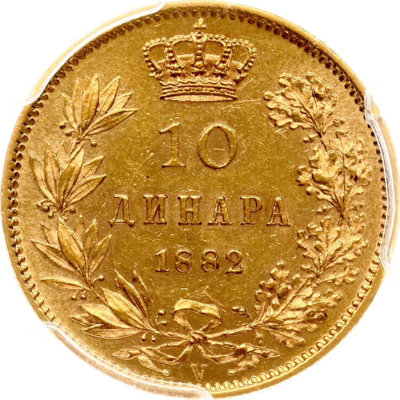 Serbia 10 Dinara 1882 V PCGS AU 58