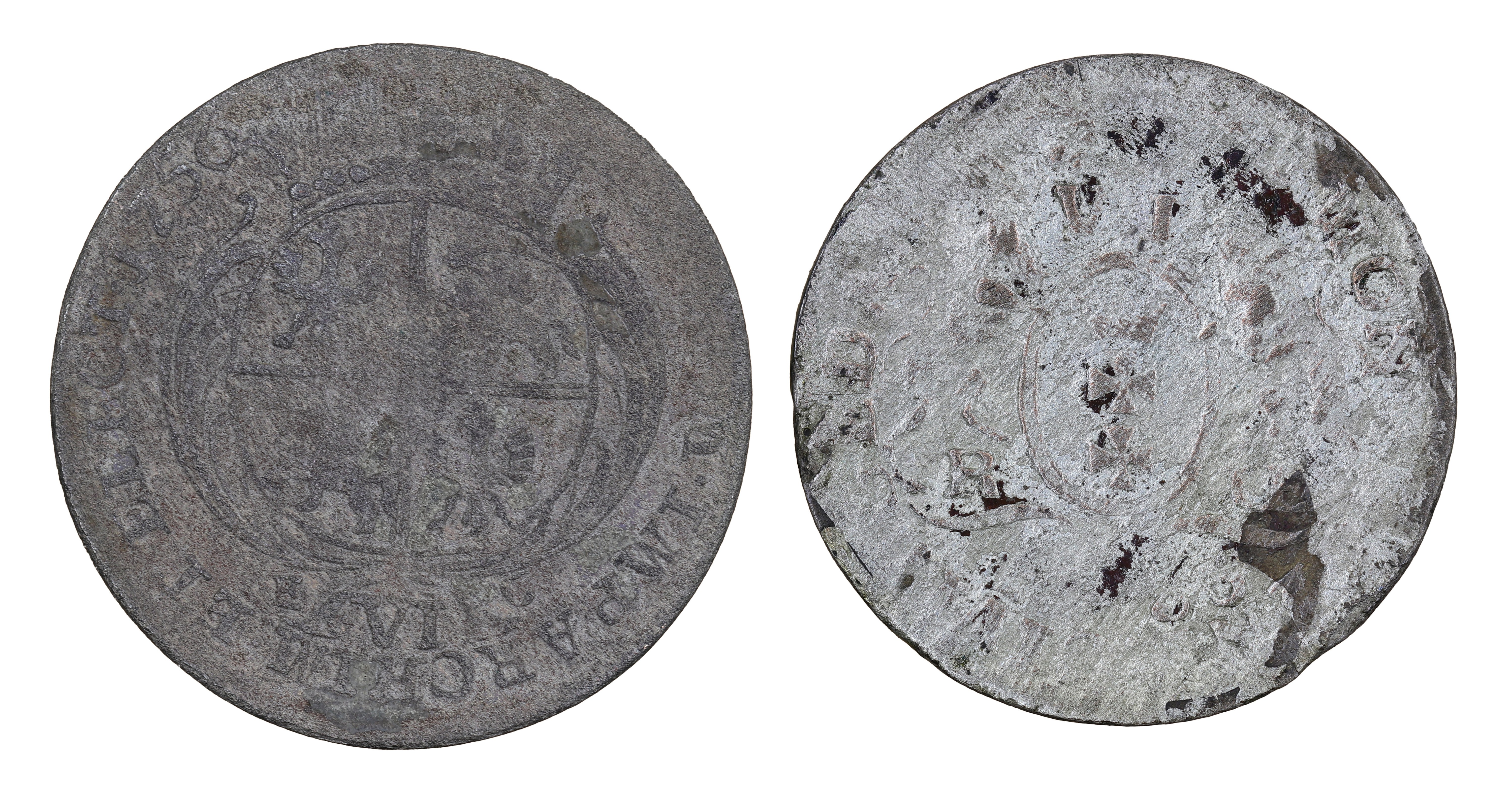 W skład zestawu wchodzą: szóstak koronny 1756 r., Kop. 2102 R2, szóstak gdański 1763 r., Kop. 7758 R2, rzadkie monety, płytko wybite, w obiegowym stanie zachowania