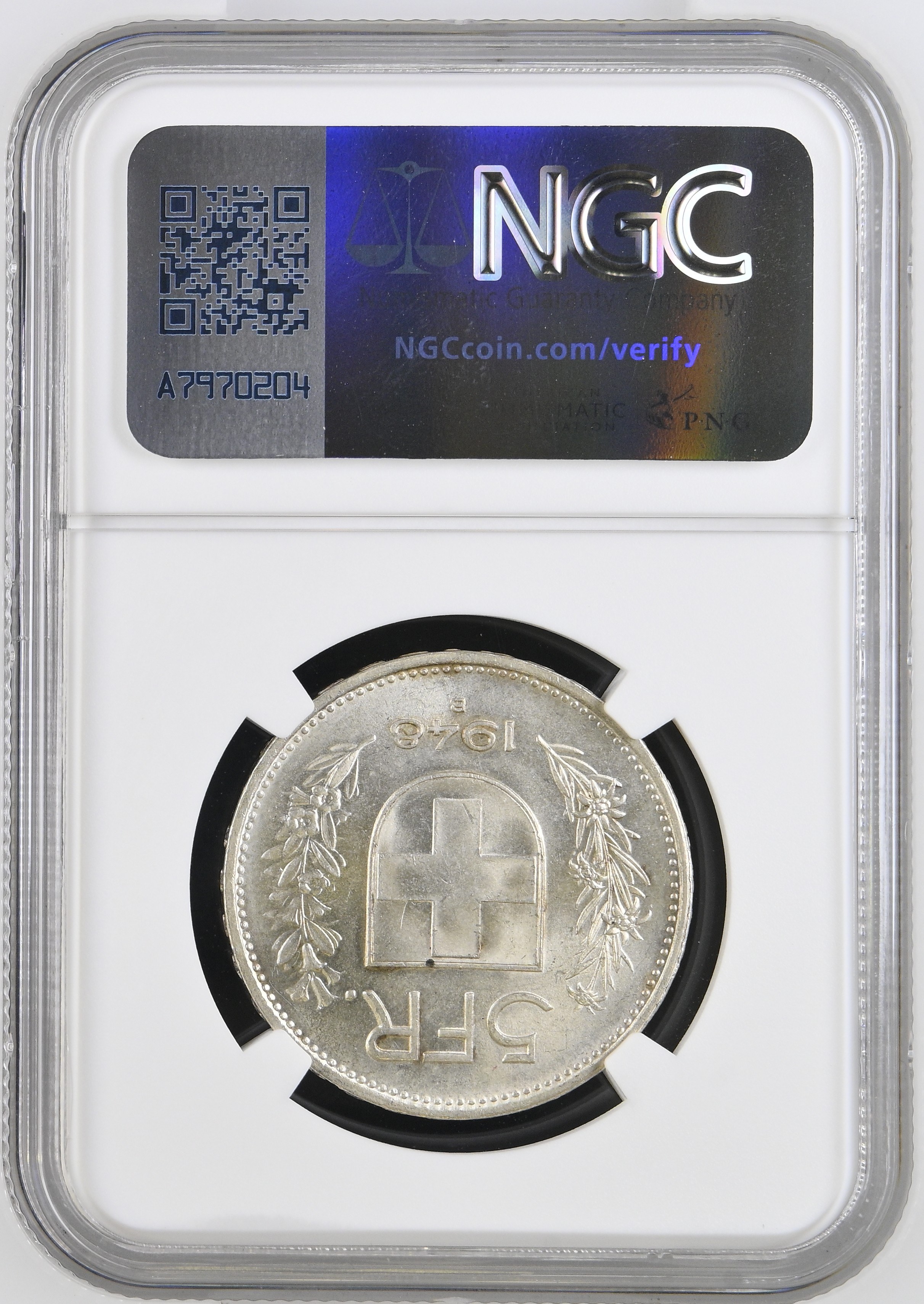 5 Franken 1948. Sehr seltener Jahrgang, Auflage nur 416'000 Exemplare. Bewertet von NGC mit MS 63.