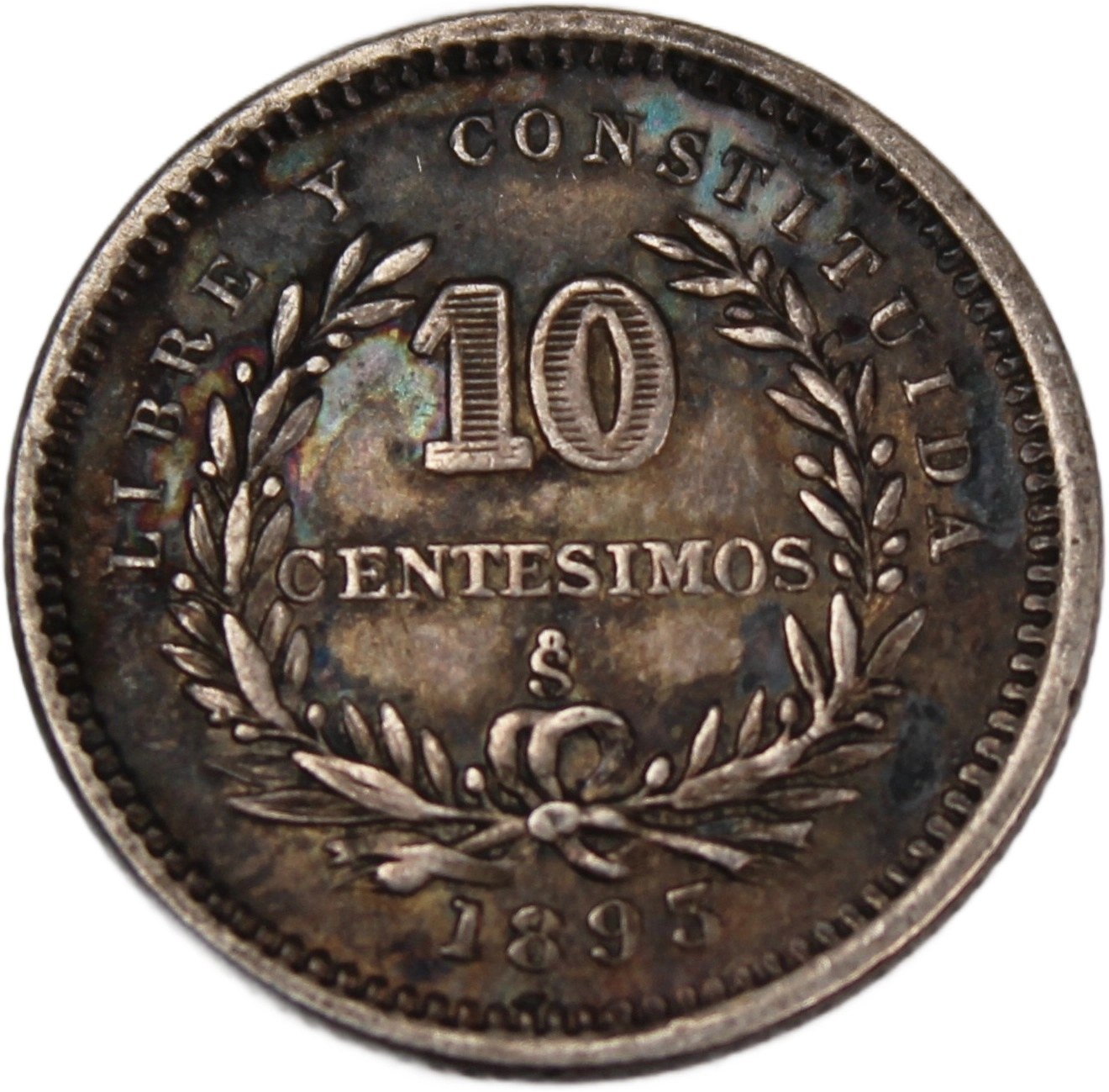 Uruguay 10 Centesimos 1893 So ??? Silver KM#14