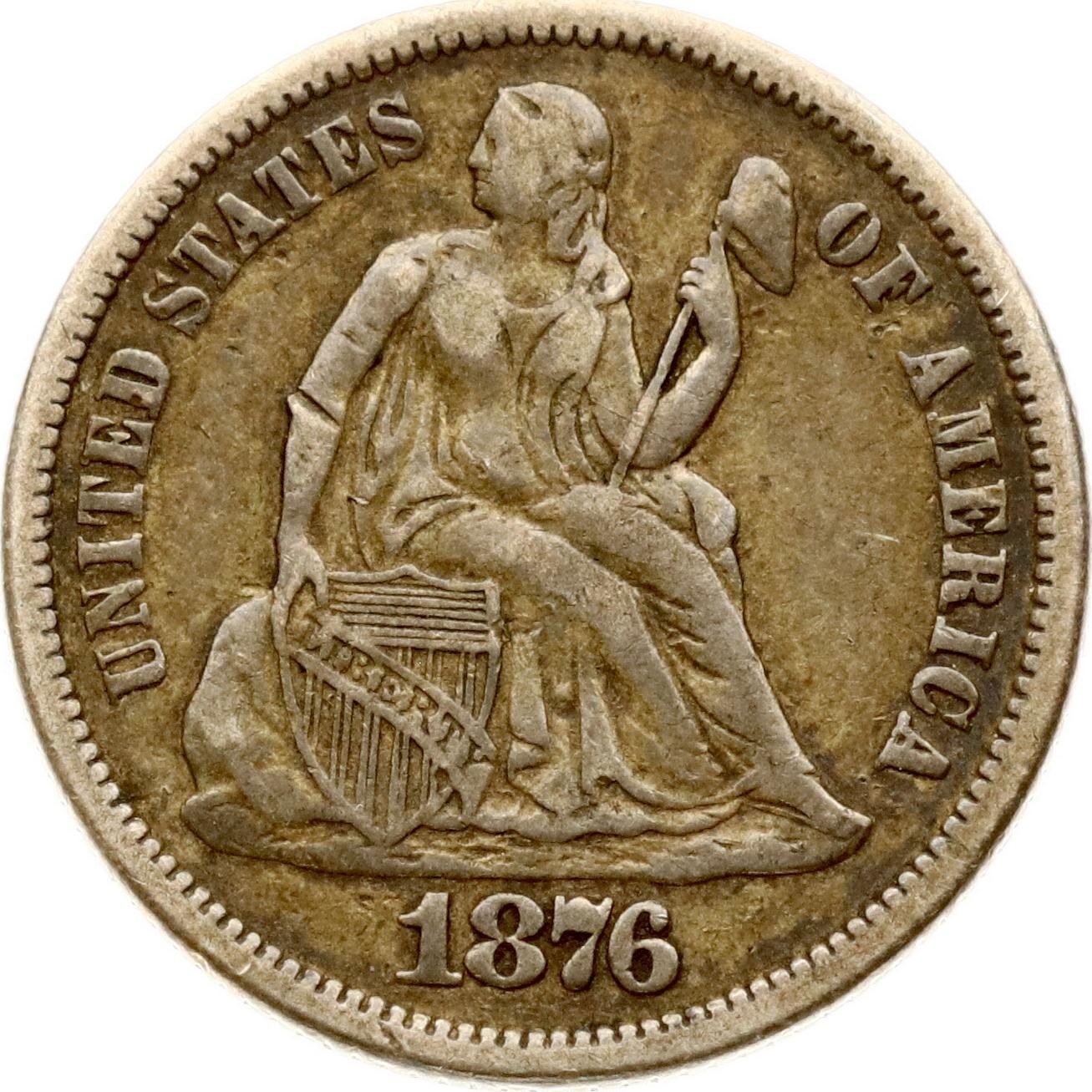 USA. Dime 1876, 'Seated Liberty Dime'. Philadelphia. Silver 2.44 g. KM A92.