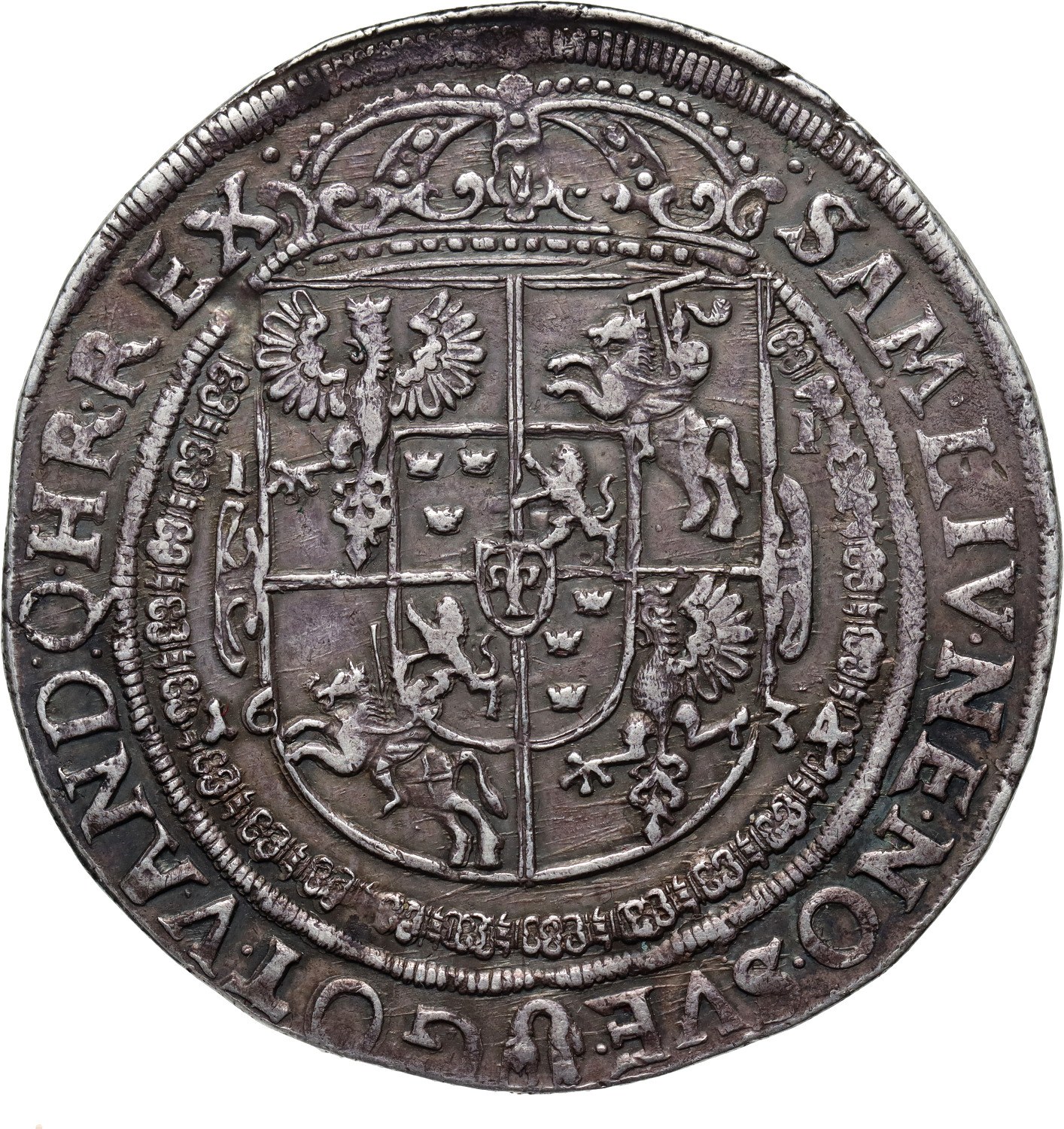 Srebro 28,63 g. Inicjały Jakuba Jacobsona van Emden I-I po bokach tarczy. Ciemna stara patyna. Bardzo atrakcyjny egzemplarz.