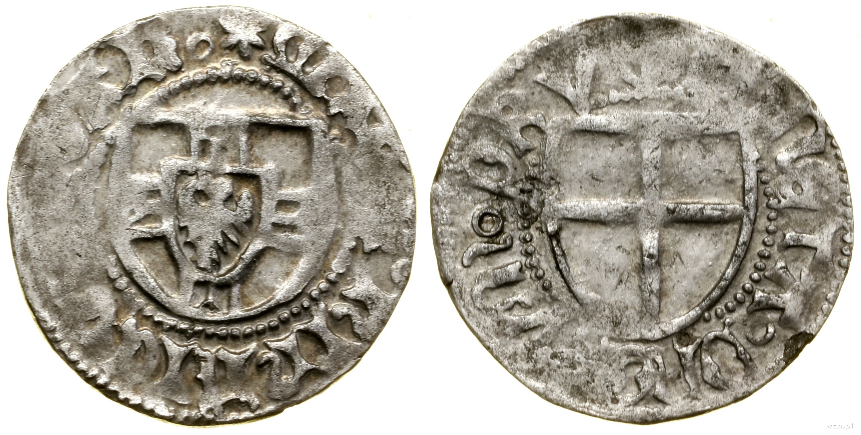 Aw: Tarcza Wielkiego Mistrza, ✶ MΛGR ◦ hINRIC…VΛR ◦; Rw: Tarcza zakonna, (tarcza) MONETΛ ◦ DNORVM ◦ PRV