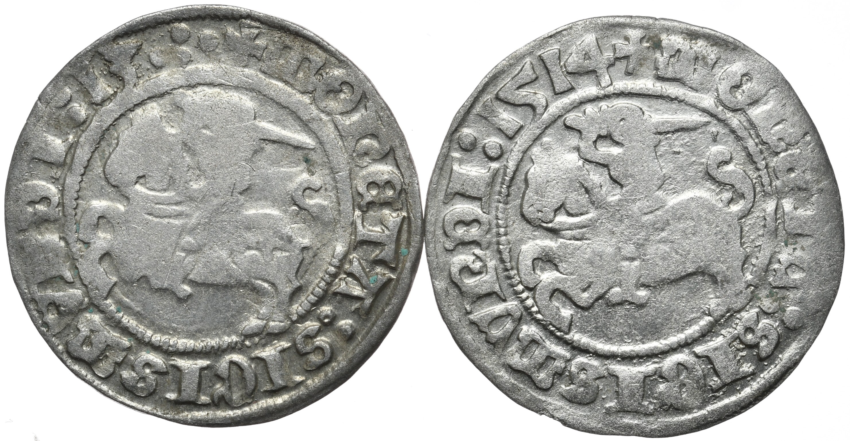 Zestaw 2 półgroszy 1513-1514, Wilno, data skrócona i pełna