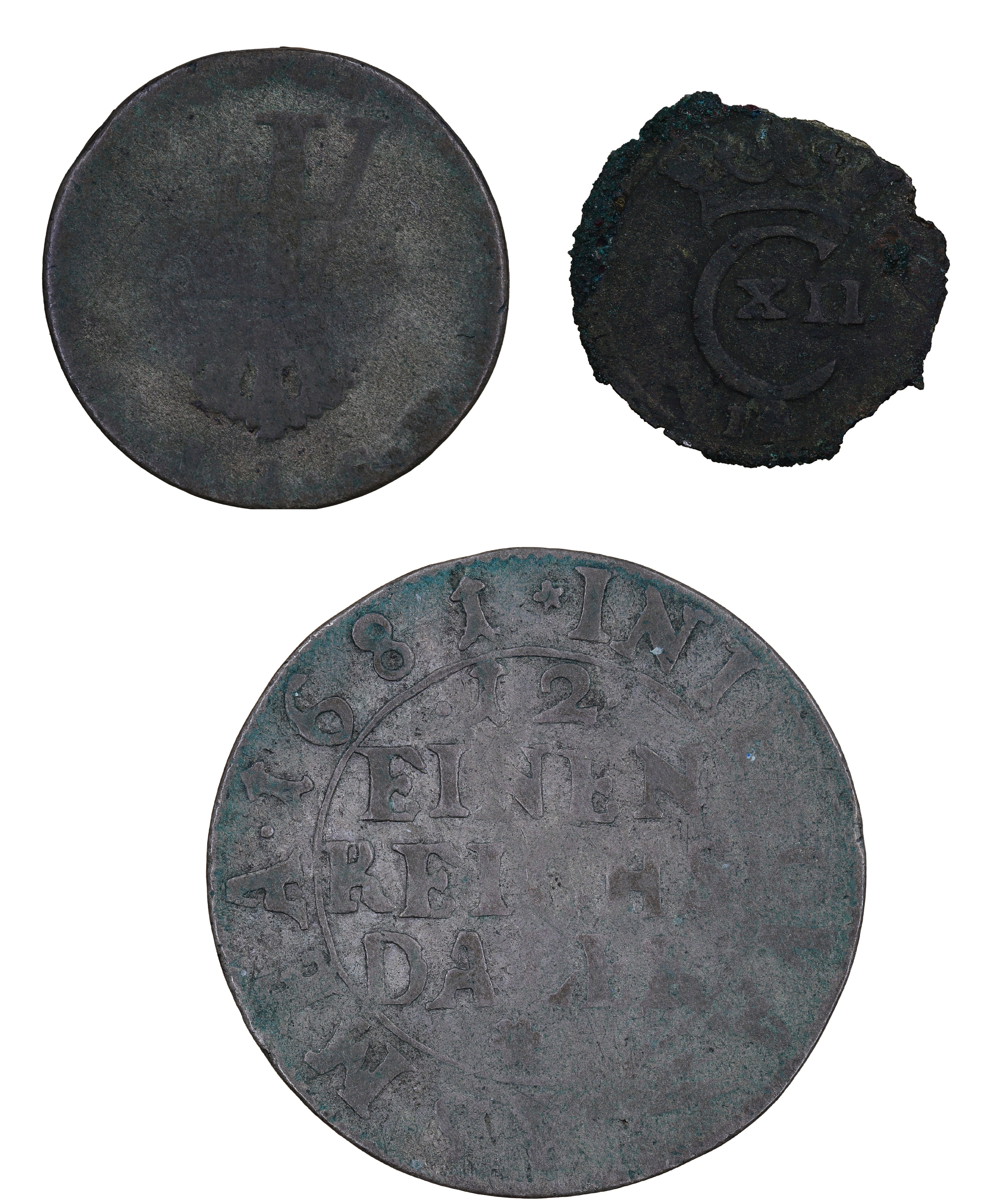 W skład zestawu wchodzą: 1/12 talara 1681 r., Karol XI (srebro, waga: 3,37 g, średnica: 26 mm, Kop. 9828 R1); wit b.d. (1707 r.), Karol XII, Kop. 9944 R3; 1/48 talara 1763 r., Adolf Fryderyk, Kop. 9962 R