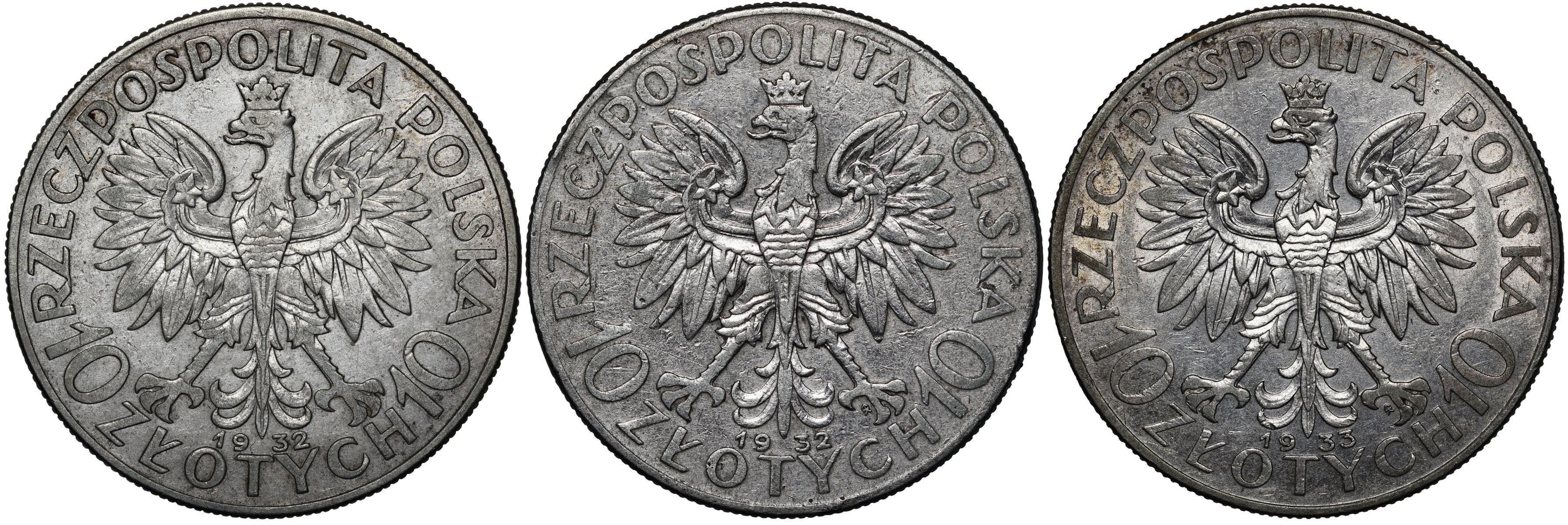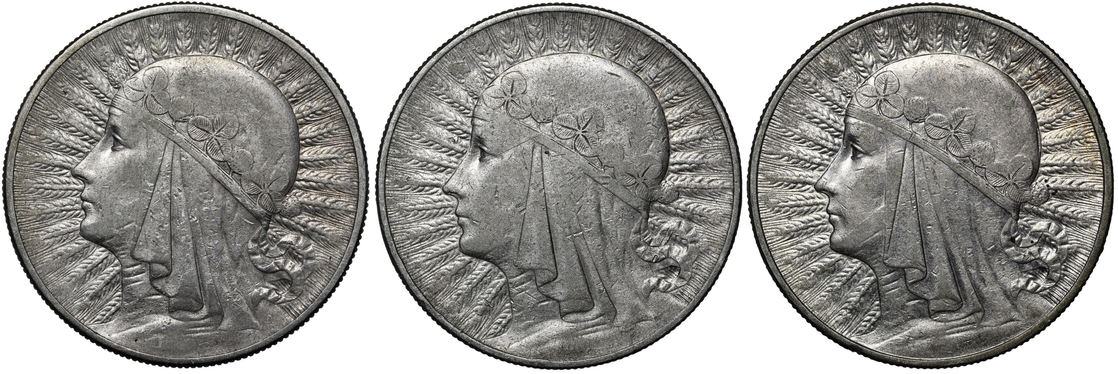 Zestaw 3 sztuki 10 złotych Głowa Kobiety