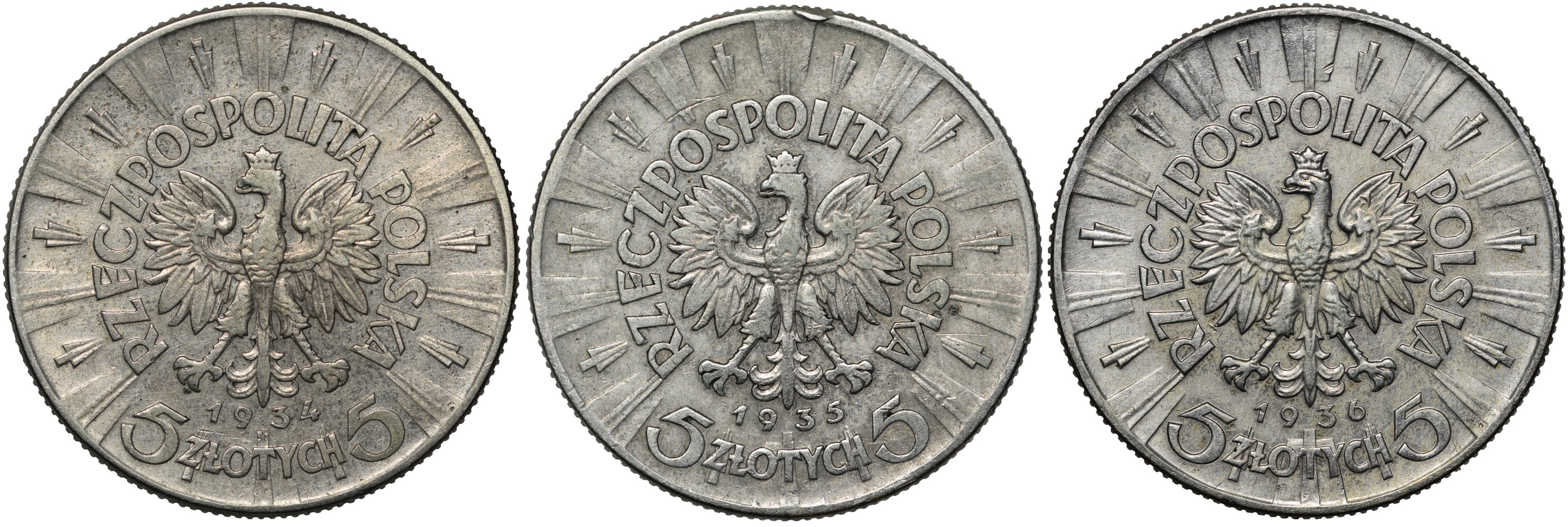 ZESTAW 3 sztuki 5 złotych Piłsudski