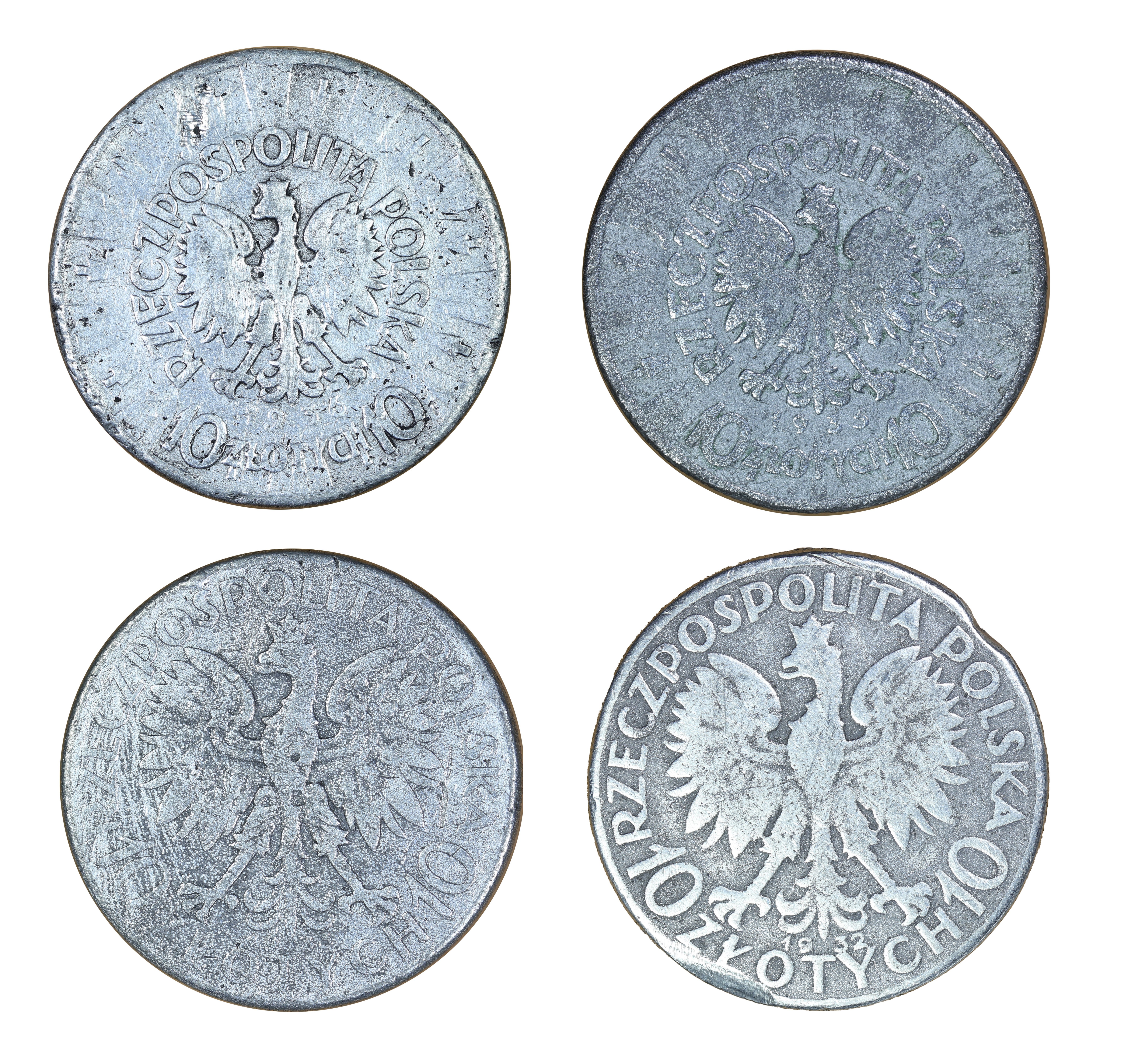 Zestaw 4 szt. falsów 10 zł z epoki, II RP