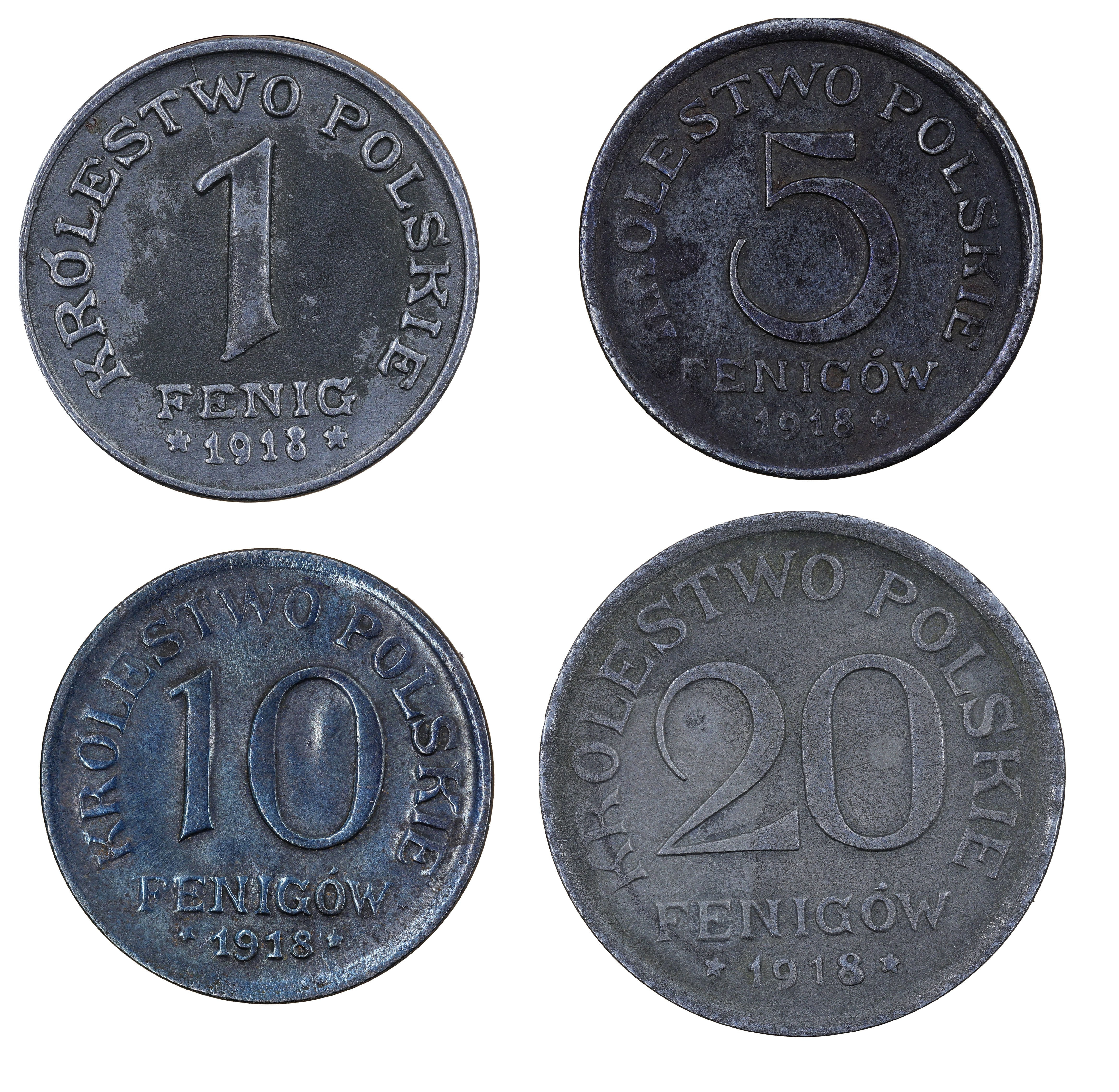 Żelazo, zestaw zawiera: 1 fenig 1918 r.; 5 fenigów 1918 r.; 10 fenigów 1918 r.; 20 fenigów 1918 r.