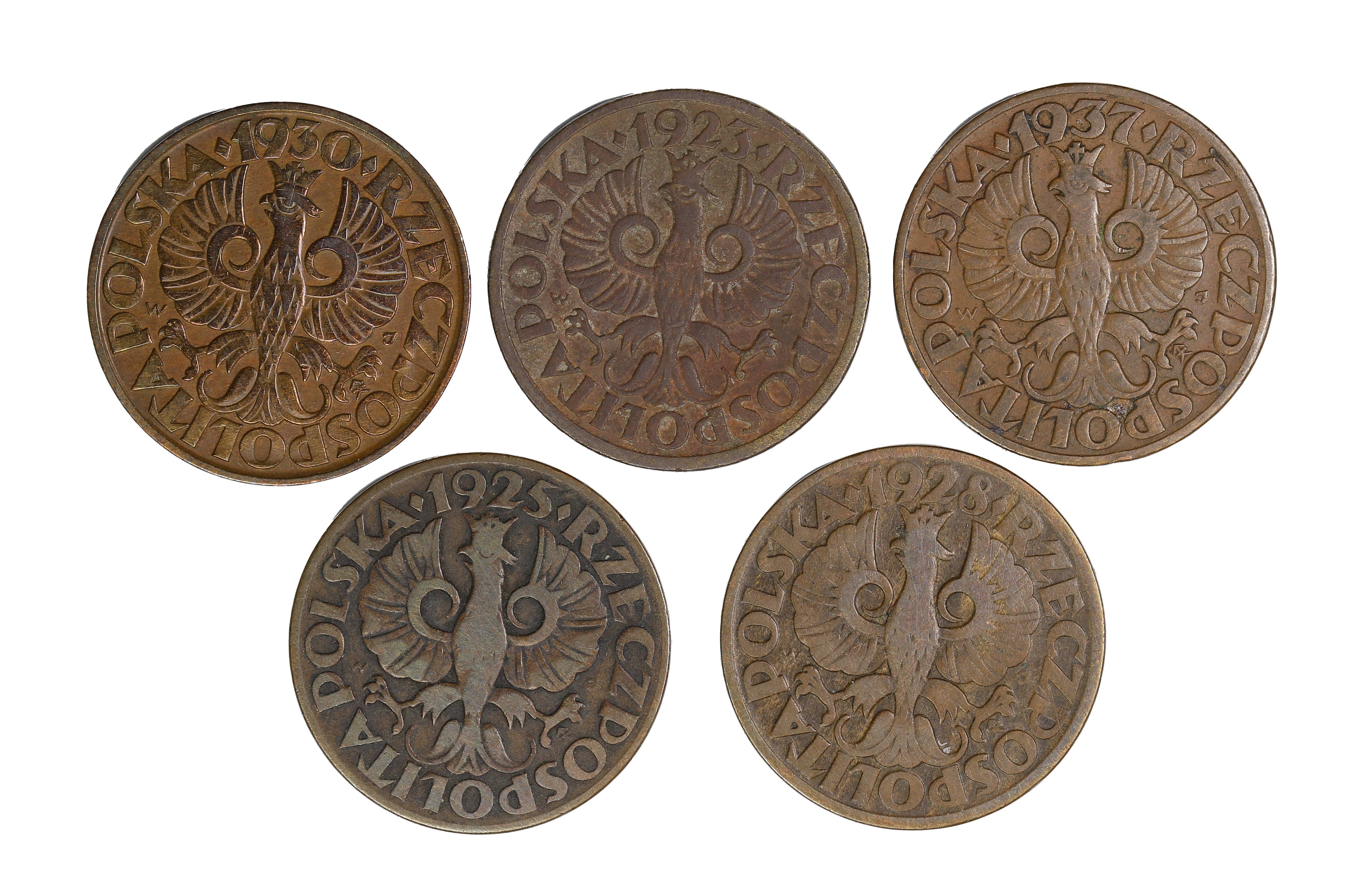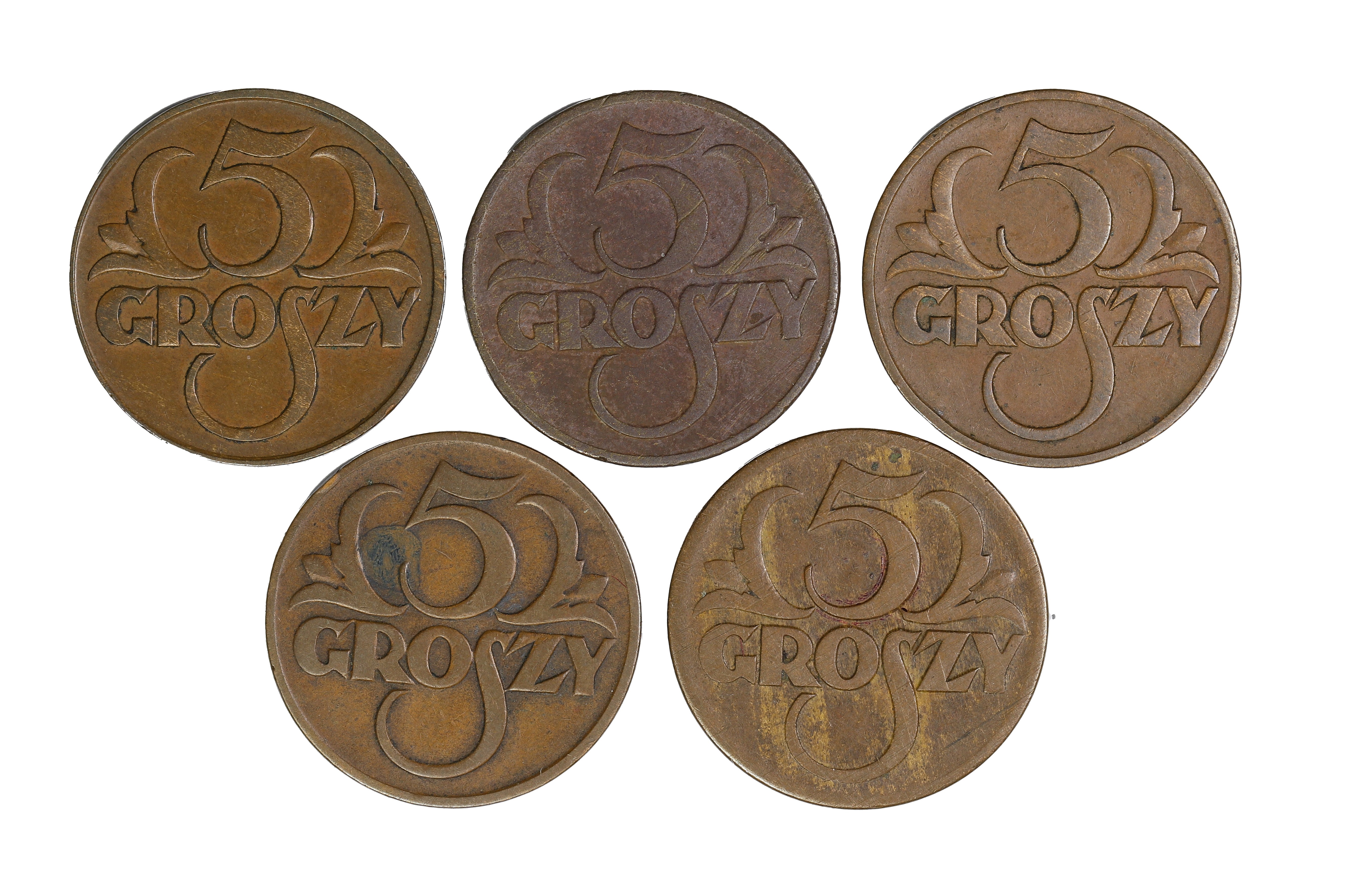 Zestaw 5 szt. 5 groszy, II Rzeczpospolita Polska 1923-1929