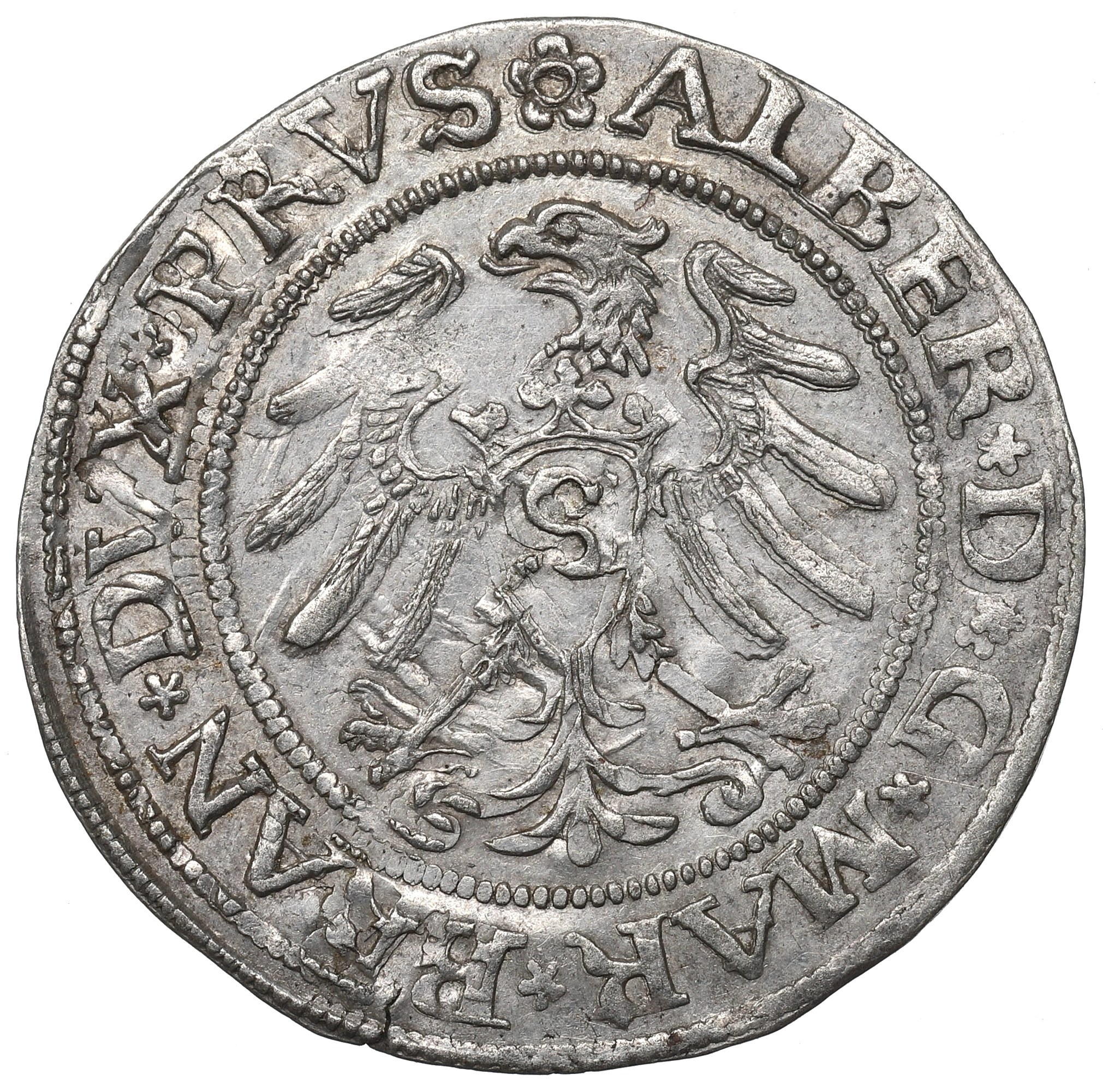 Rewers: orzeł Prus Książęcych z inicjałem Zygmunta na piersi w otoku perełkowym, w otoku zewnętrznym legenda rozpoczynająca się od gwiazdki:
