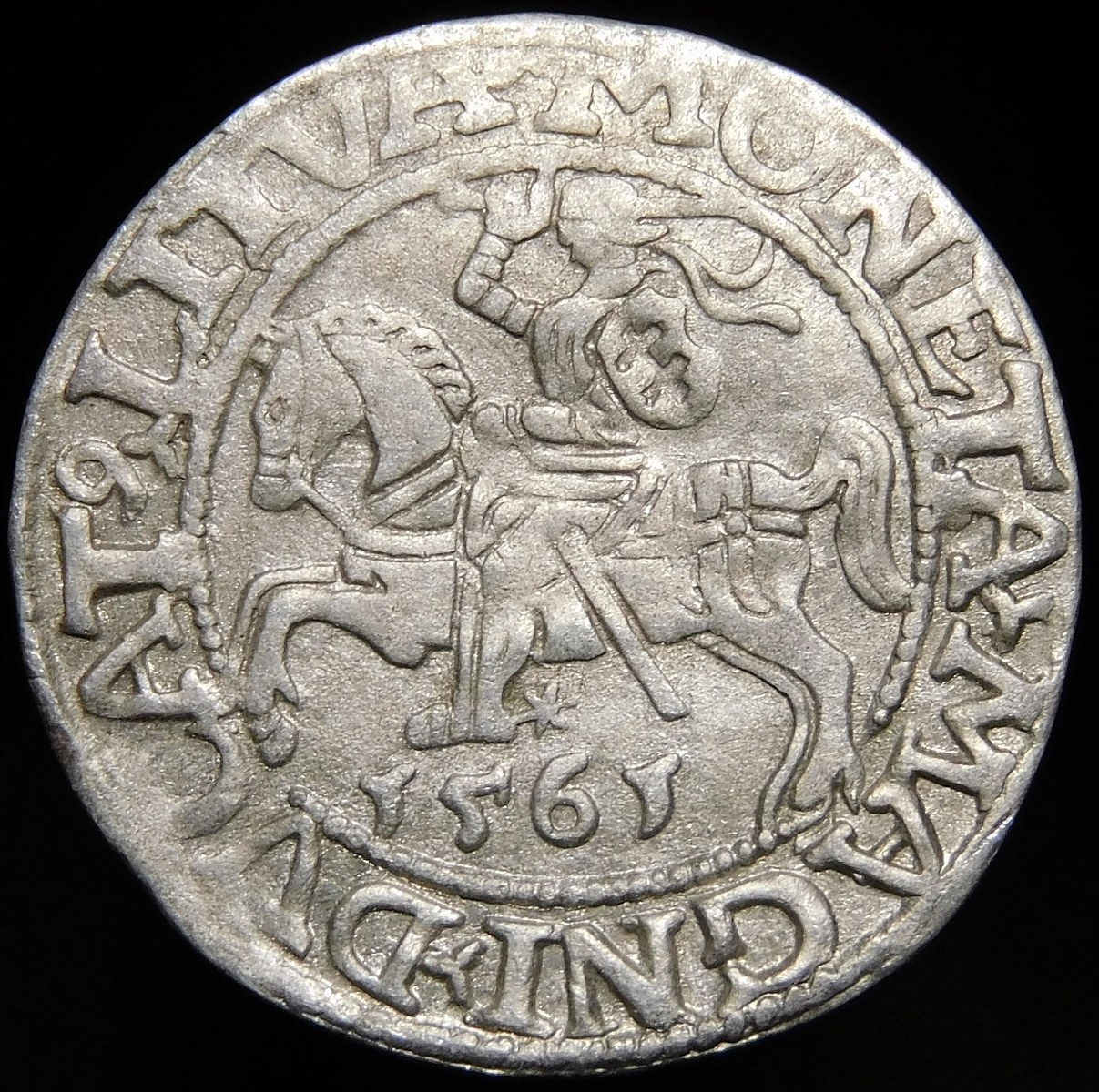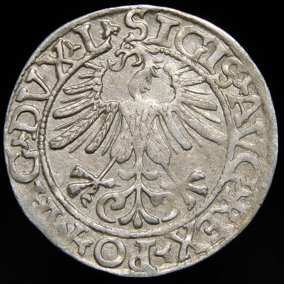 Odmiana napisowa z tytulaturą króla na awersie zakończoną ... L oraz napisem