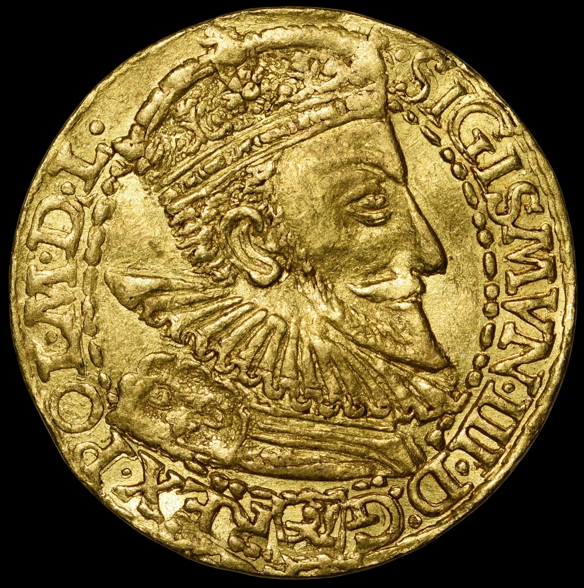 W otoku napis przedzielony u góry koroną, a u dołu herbem Lewart: SIGISMVN III