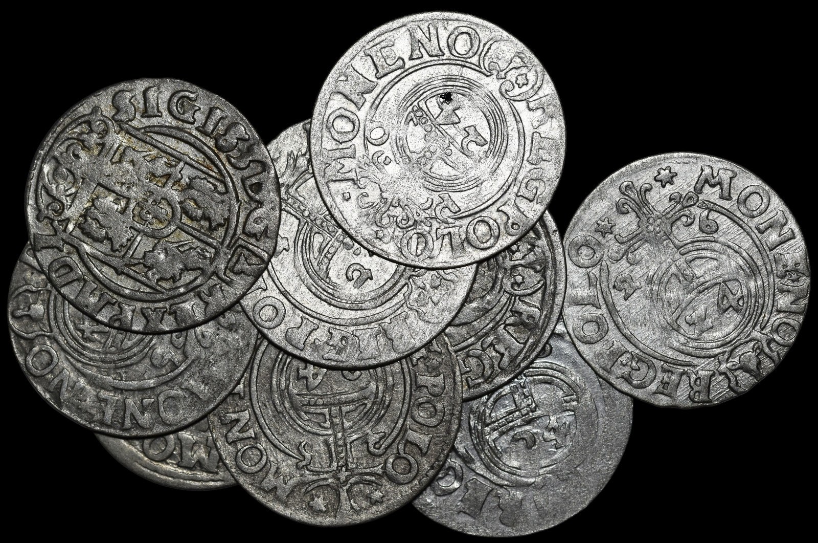 Zestaw dziewięciu półtoraków wybitych w mennicy bydgoskiej i królewieckiej.