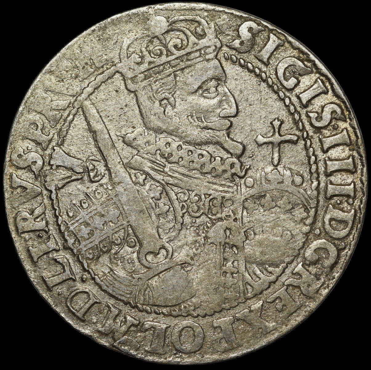 Odmiana napisowa z tytulaturą króla SIGIS ... PRV M w otoku na awersie oraz
