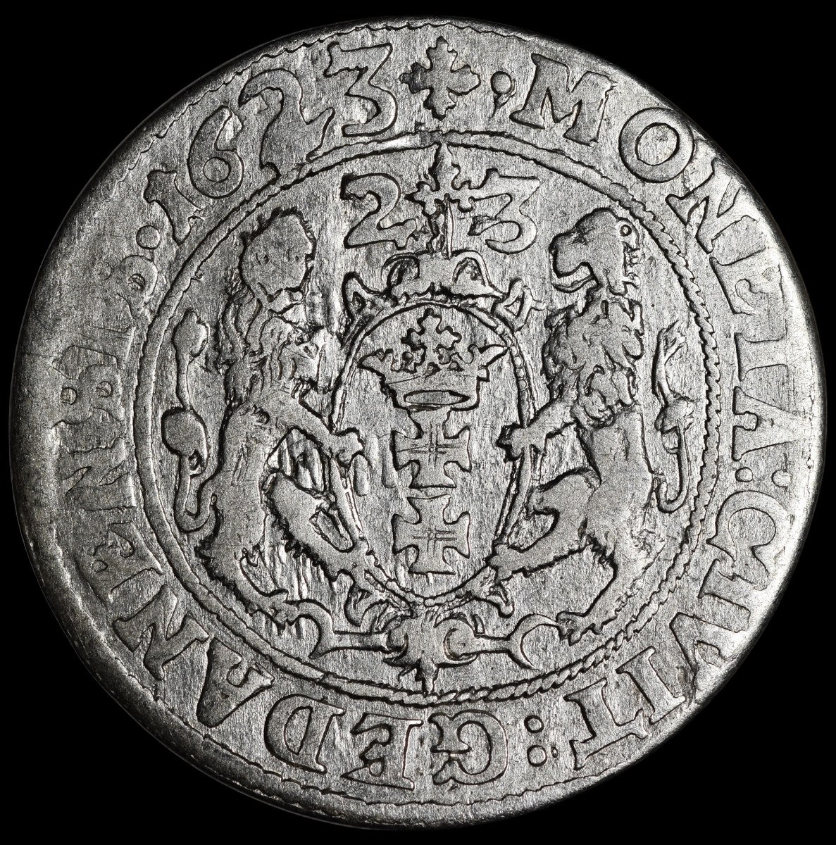 Odmiana z pełną datą 1623 w napisie otokowym oraz skróconą datą 2 – 3 nad tarczą herbową na rewersie.