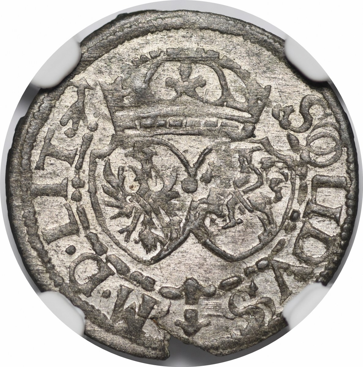 Niewielka wada krążka, ale jak na ten typ pięknie wybita i zachowana moneta. Bardzo rzadka odmiana z herbem Bogoria w